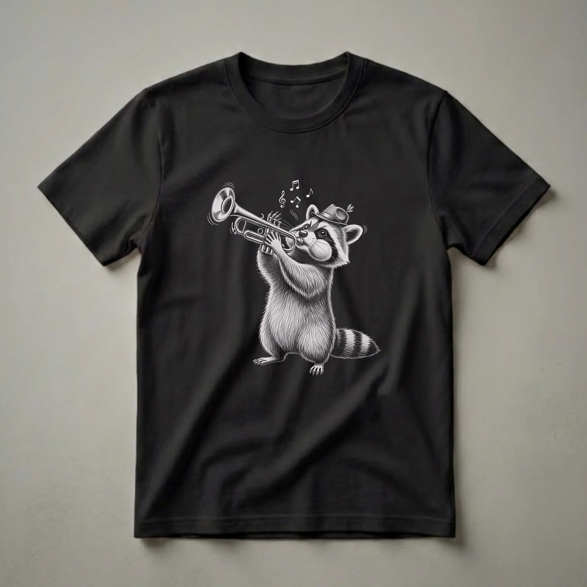 - Trumpet-playing raccoon design for brass musicians and trumpet enthusiasts.