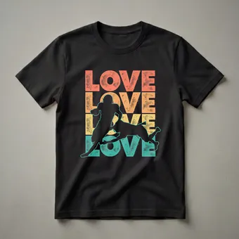 American football fans who want to showcase their dedication will reach for this eye-catching graphic tee. The design features the word "LOVE" stacked vertically in a distressed retro style, with colors of coral, golden yellow, and teal. Superimposed over the text is a dynamic silhouette of two football players engaged in a tackle, capturing the intensity of the game. This shirt is a fantastic way for players, coaches, or devoted fans to express their love for the sport. Whether you're heading to a game, practice, or just out and about, this t-shirt makes a statement. It's a thoughtful gift for any football enthusiast in your life who appreciates vintage aesthetics and the thrill of the gridiron. The bold graphic and retro color palette make this shirt a standout piece for anyone who lives and breathes American football. Wear it to the stadium to cheer on your favorite team or to a casual get-together with fellow sports lovers.