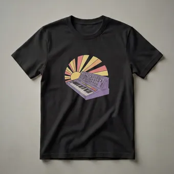 - Retro synthesizer graphic tee for electronic music producers.