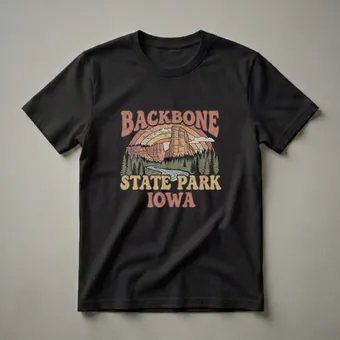 - Retro graphic tee celebrating Backbone State Park, Iowa.