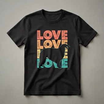 Borzoi owners know the elegance and gentle nature of this sighthound breed, originally from Russia. This retro graphic t-shirt captures that affection with a bold, stacked "LOVE" design in distressed orange, yellow, and teal. The black silhouette of a Borzoi stands proudly against the colorful text, making this shirt a striking statement piece. This tee is a go-to for any dog mom or dog dad who cherishes their Borzoi. It's a thoughtful gift for birthdays, holidays, or just because. Wear this shirt to your next dog park visit or casual outing to spark conversations with fellow dog enthusiasts. The vintage aesthetic makes it a unique addition to any dog lover's wardrobe, celebrating the distinctive charm of the Borzoi breed. This apparel is a staple in the collection.