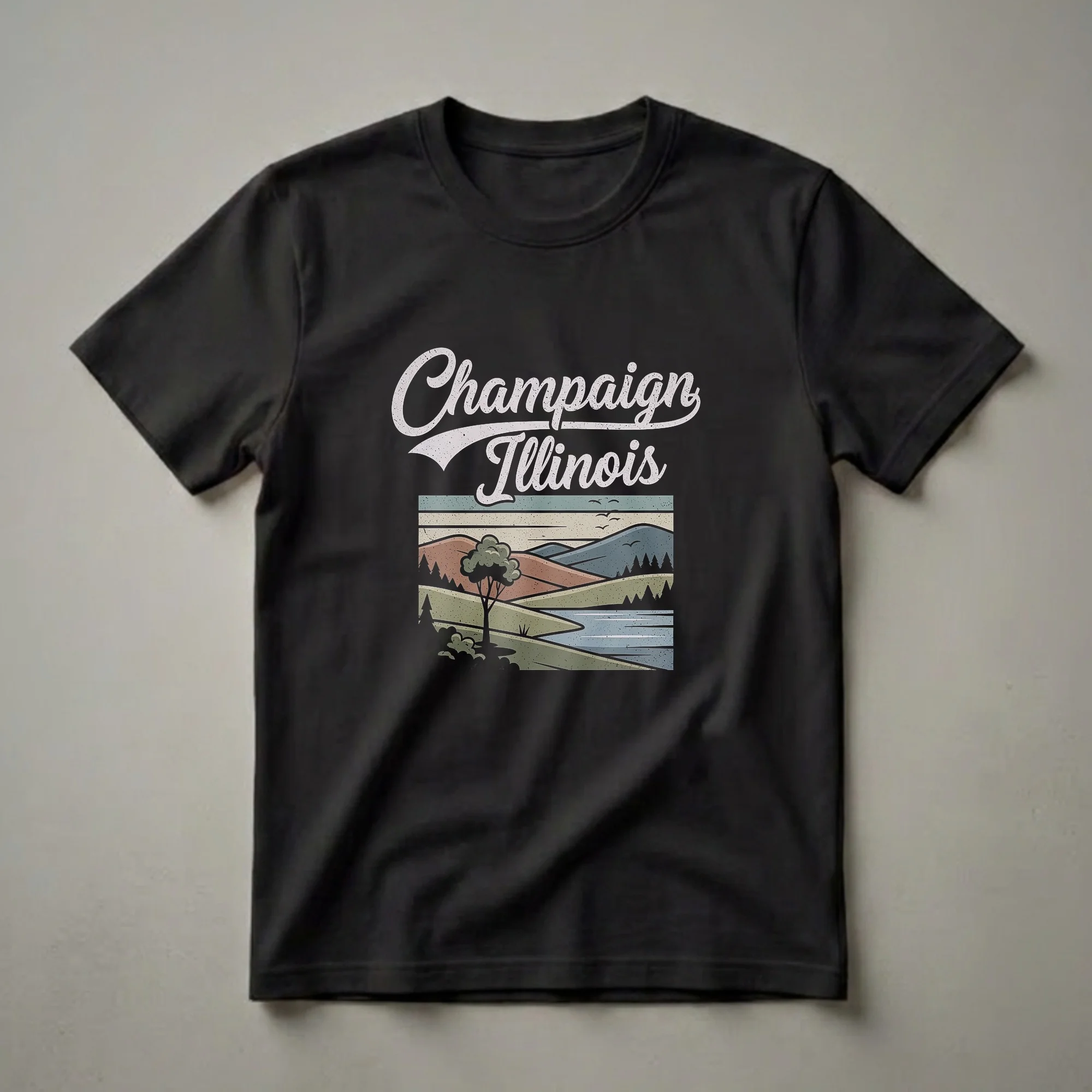 Hover to zoom · tap to expand Retro Champaign Illinois Landscape Graphic Design T-Shirt
