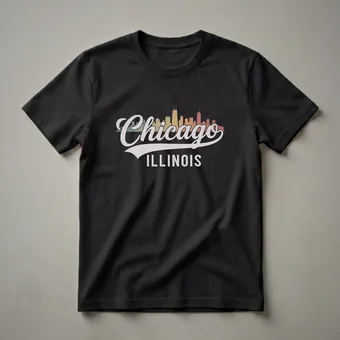 - Retro Chicago skyline graphic tee for Illinois city lovers.