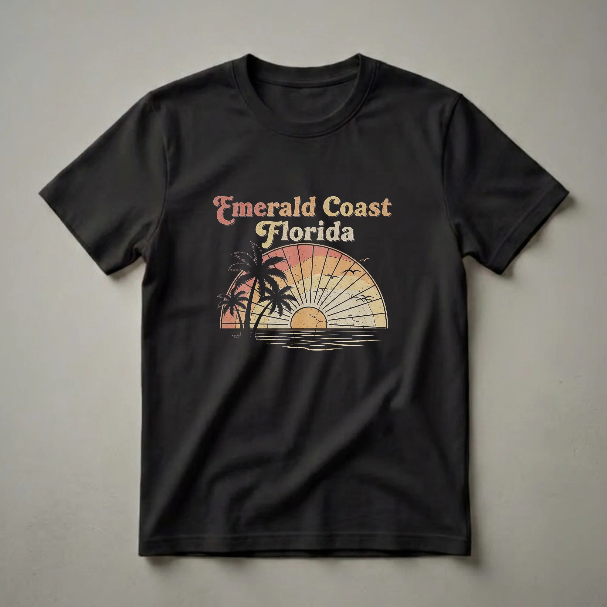 Hover to zoom · tap to expand Retro Emerald Coast Florida Sunset Palm Tree Graphic T-Shirt