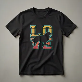- Retro 'LOVE' graphic tee for Leonberger dog moms and dads.