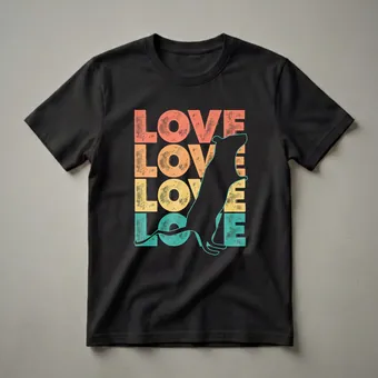Rat enthusiasts who appreciate the intelligence and unique personalities of these often-misunderstood rodents will reach for this eye-catching graphic tee. The design features a striking black silhouette of a rat, its form outlined with a subtle teal border, positioned against a backdrop of stacked, distressed text. The word 'LOVE' is repeated four times, each instance rendered in a different retro color: coral, orange, yellow, and teal. This color palette evokes a vintage aesthetic, making the shirt a stylish statement piece. Rats, known for their complex social structures and problem-solving abilities, are fascinating companions. This t-shirt serves as a declaration of affection for these clever creatures. It makes a thoughtful gift for anyone who cherishes their pet rat or admires these animals. Wear this shirt to casual outings, pet expos, or simply while relaxing at home, showcasing your love for rats with retro flair. This shirt is a staple for any rat lover's wardrobe.