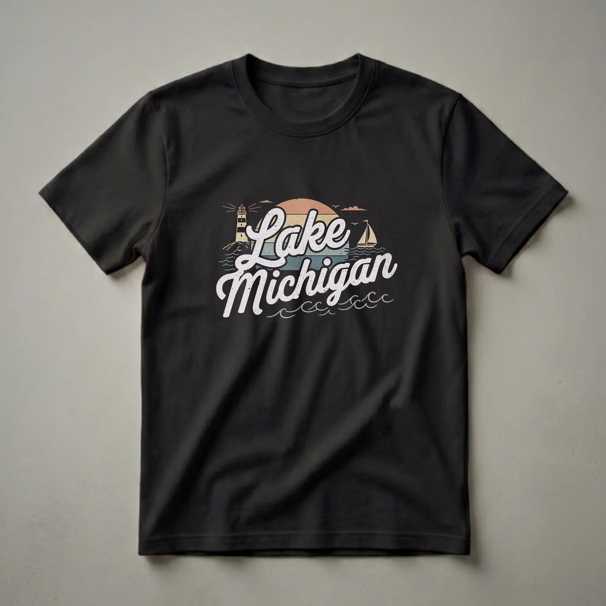 - Retro Lake Michigan graphic tee for fans of the Great Lakes.