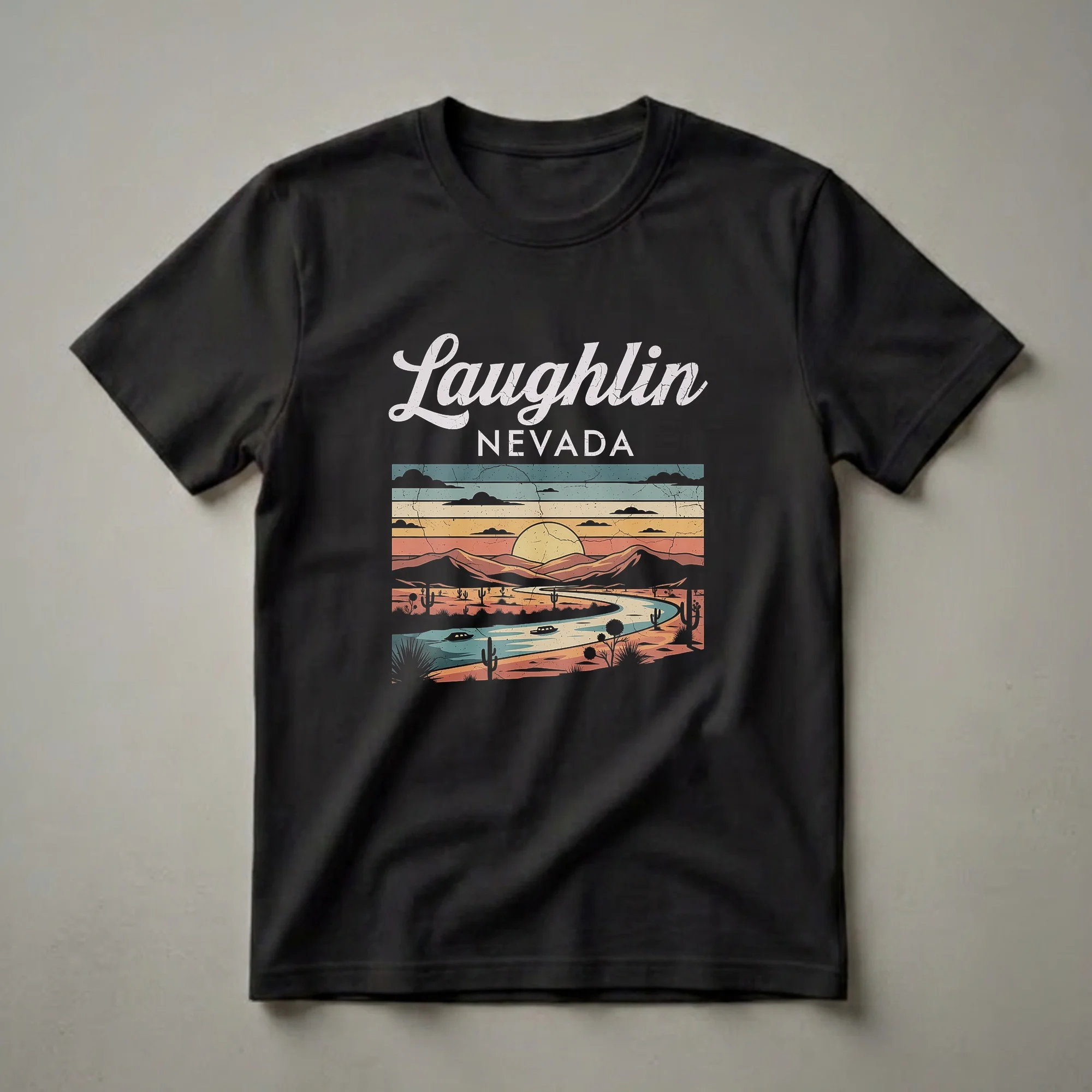 - Showcase Laughlin, Nevada's desert charm with this retro sunset graphic tee.