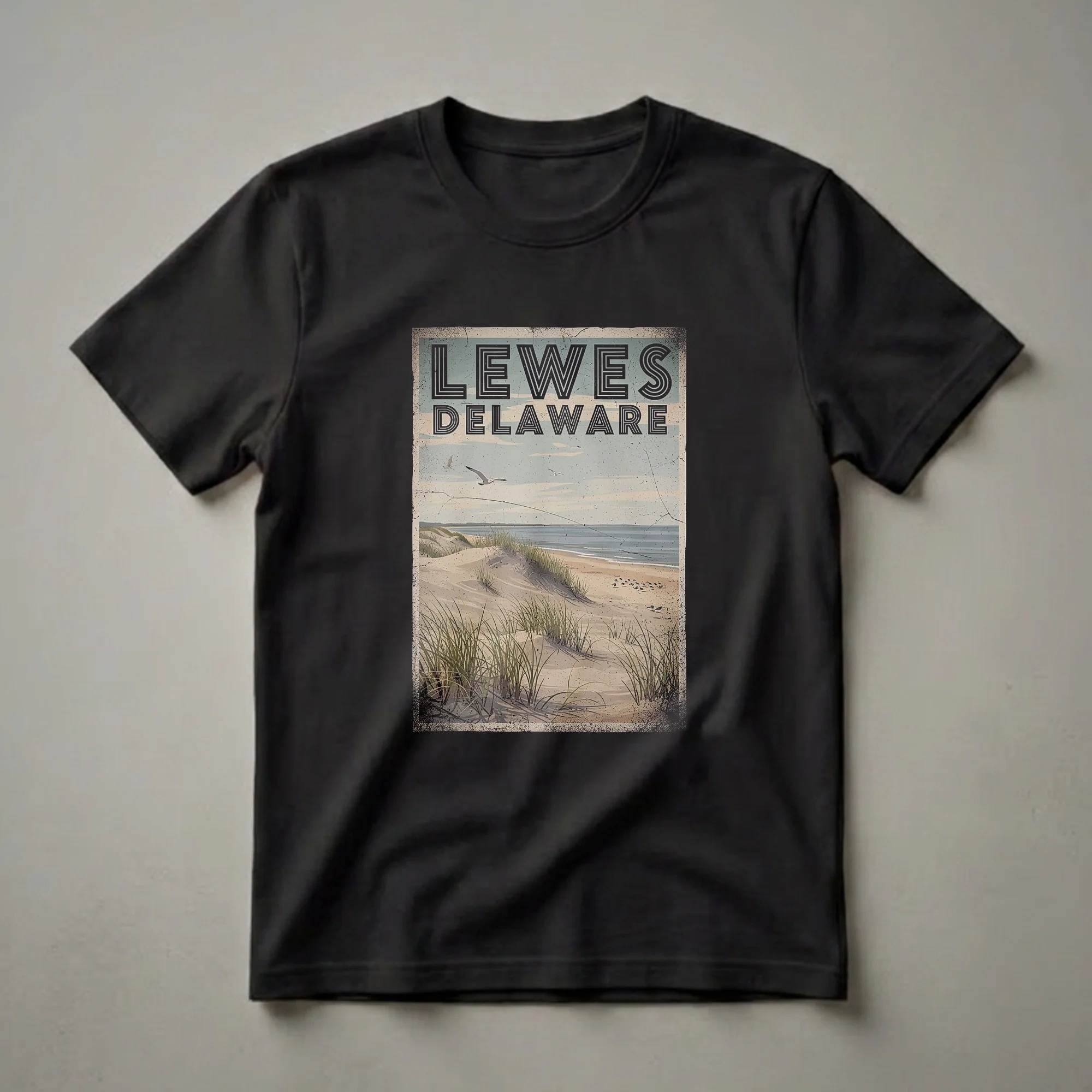- Retro graphic t-shirt for Lewes, Delaware travelers.