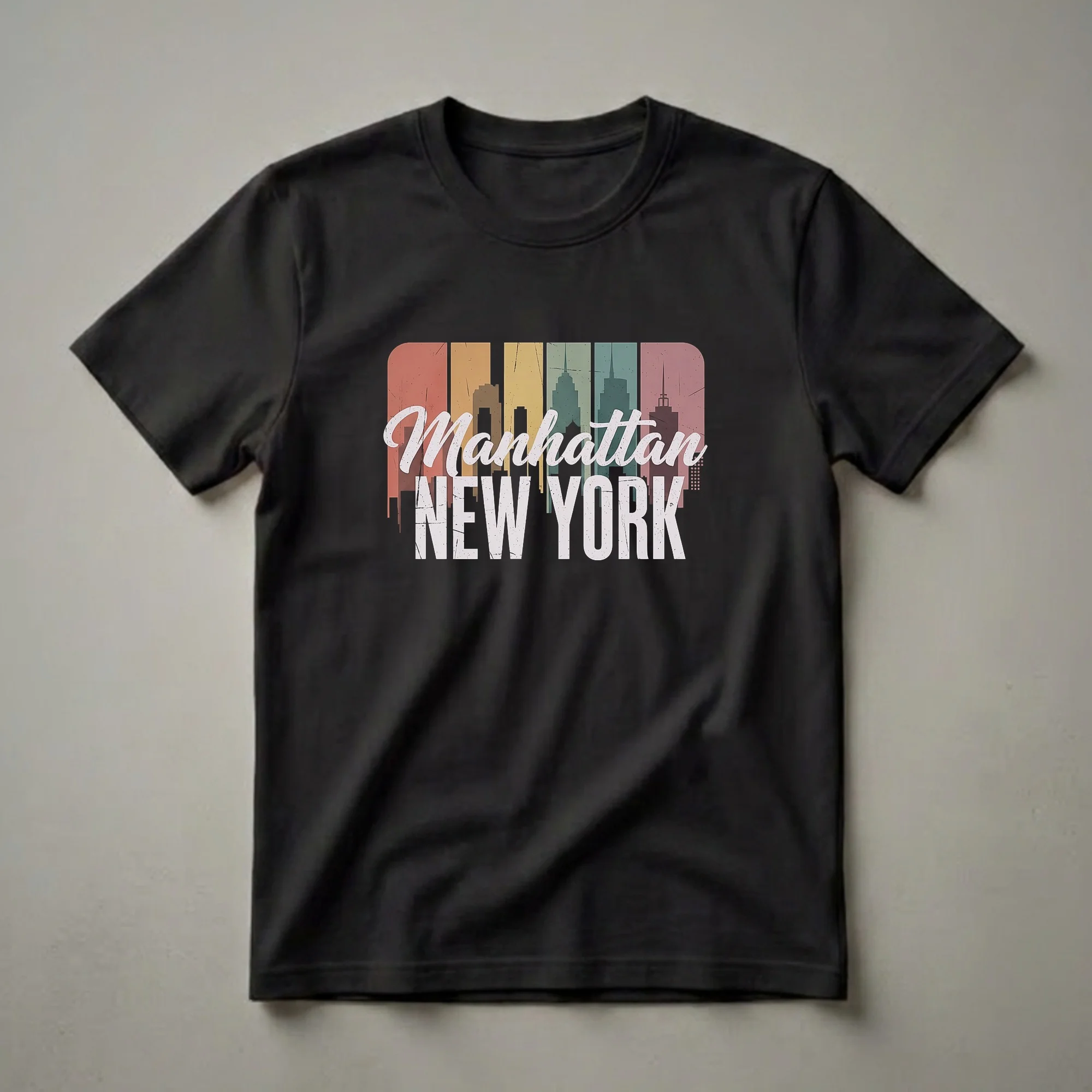 - Retro Manhattan New York graphic t-shirt for city lovers.