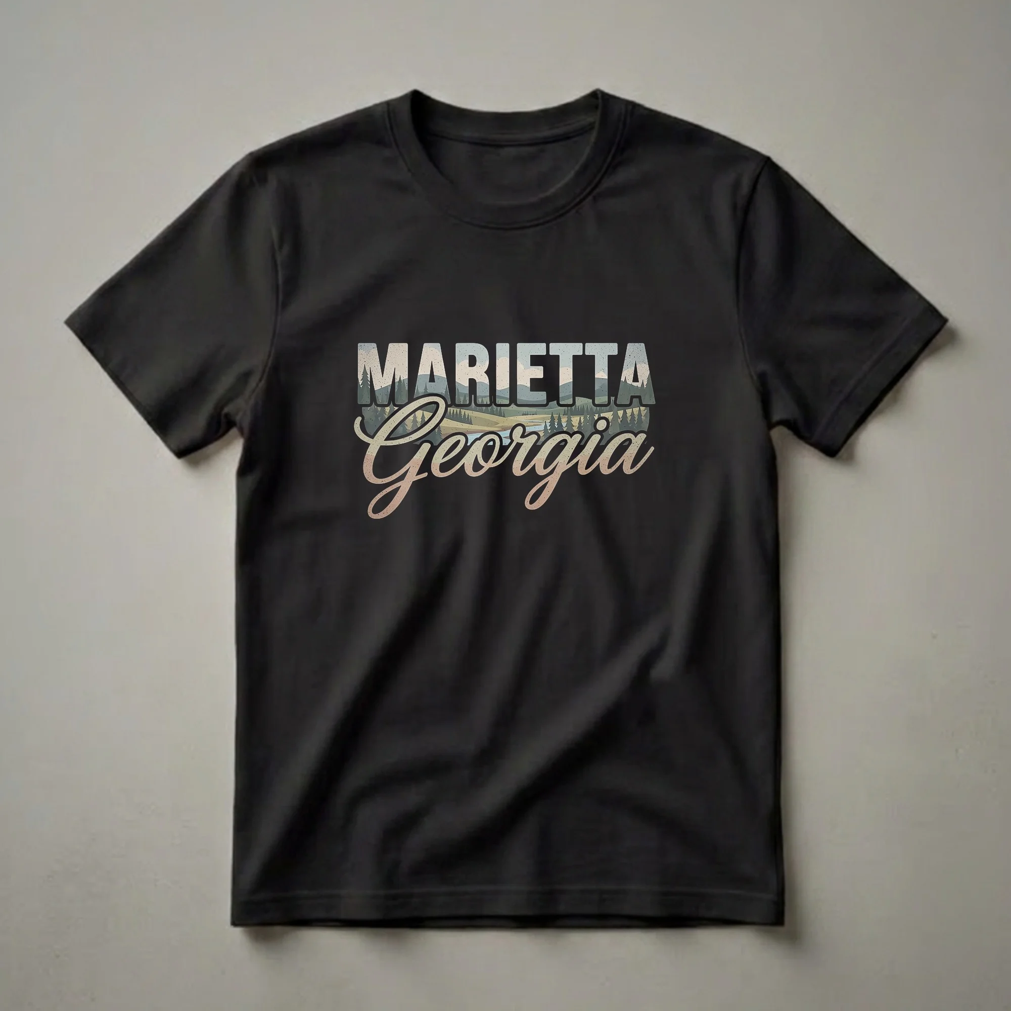 - Marietta, Georgia residents can proudly display their city pride with this retro landscape tee.