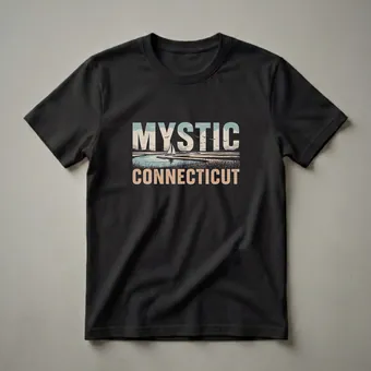 - Retro graphic t-shirt for fans of Mystic, Connecticut.