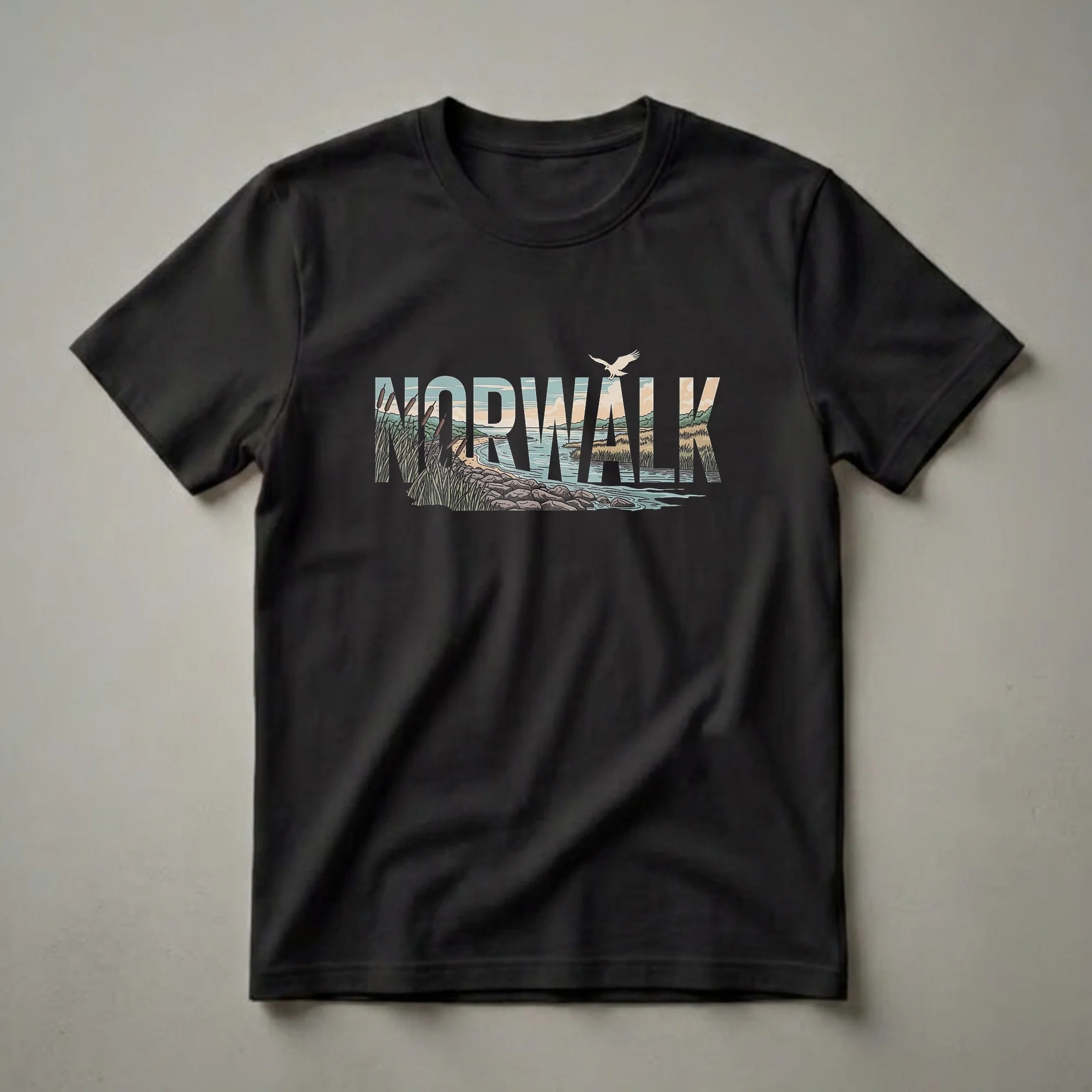 - Retro Norwalk, CT graphic t-shirt for residents and visitors.