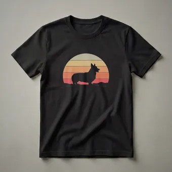- Retro sunset graphic tee for Pembroke Welsh Corgi lovers.