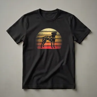 - Dalmatian silhouette on a retro sunset graphic tee for proud owners.