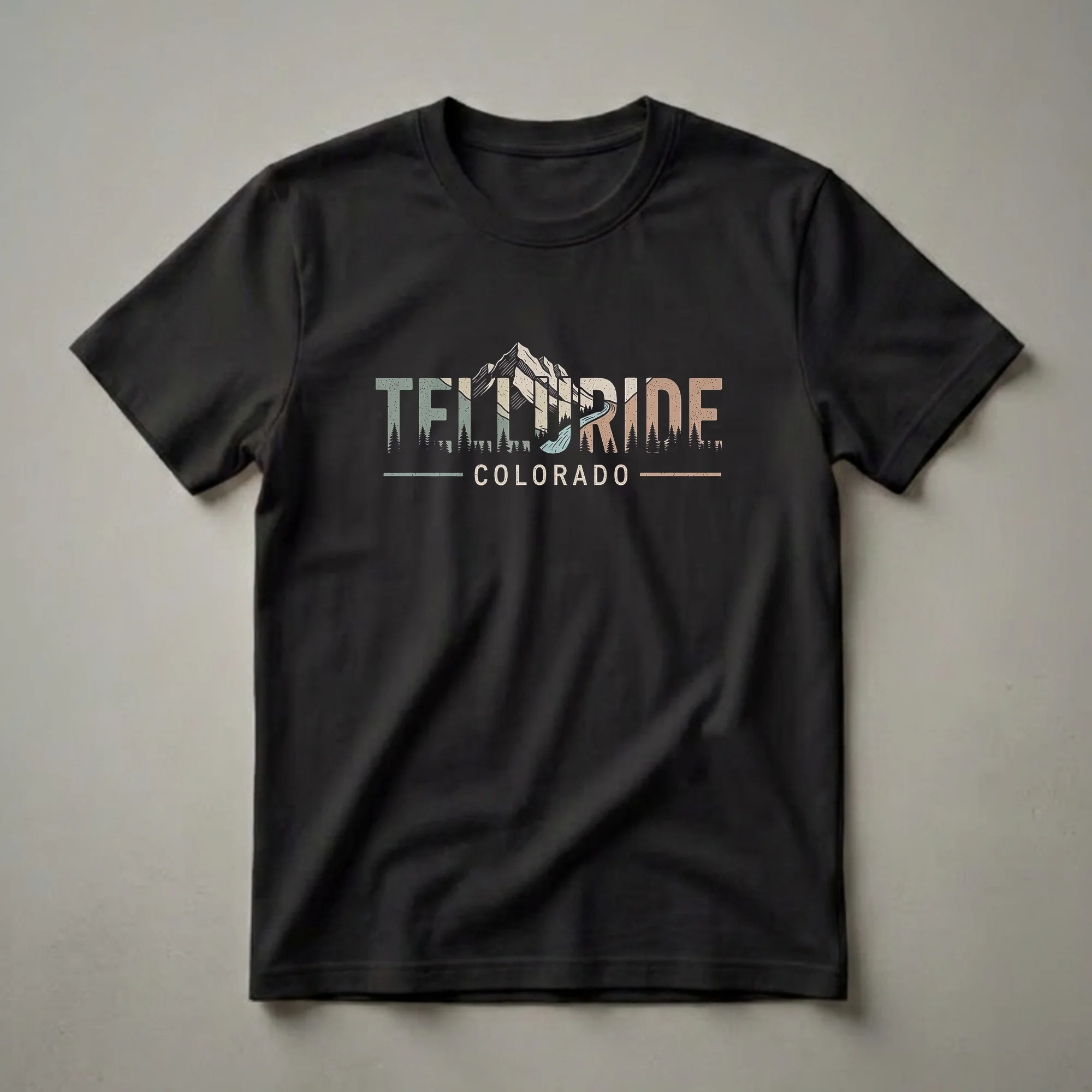 - Retro Telluride Colorado graphic tee for mountain lovers.