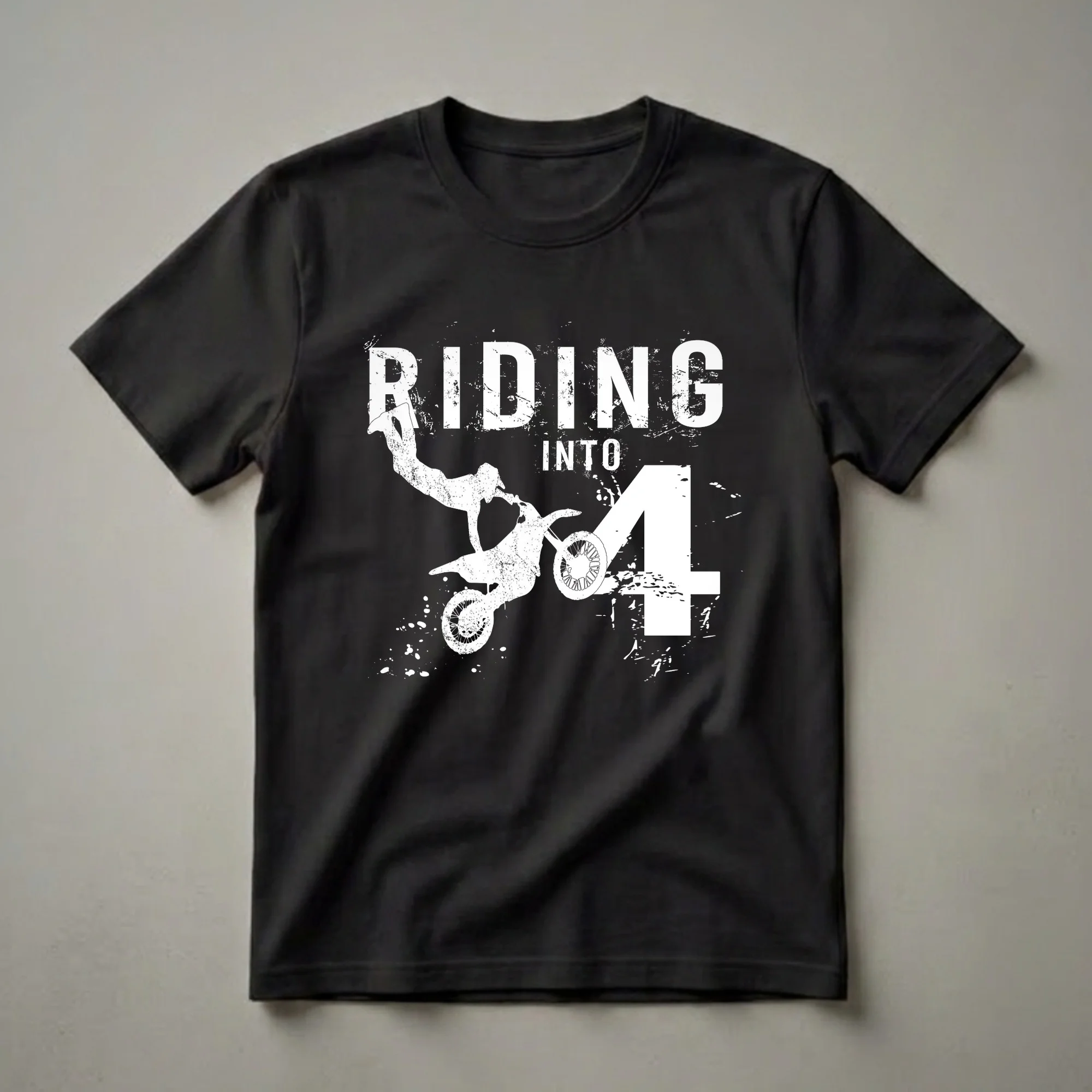 Hover to zoom · tap to expand Riding Into 4 Years Old Dirt Bike Birthday T-Shirt for Boys
