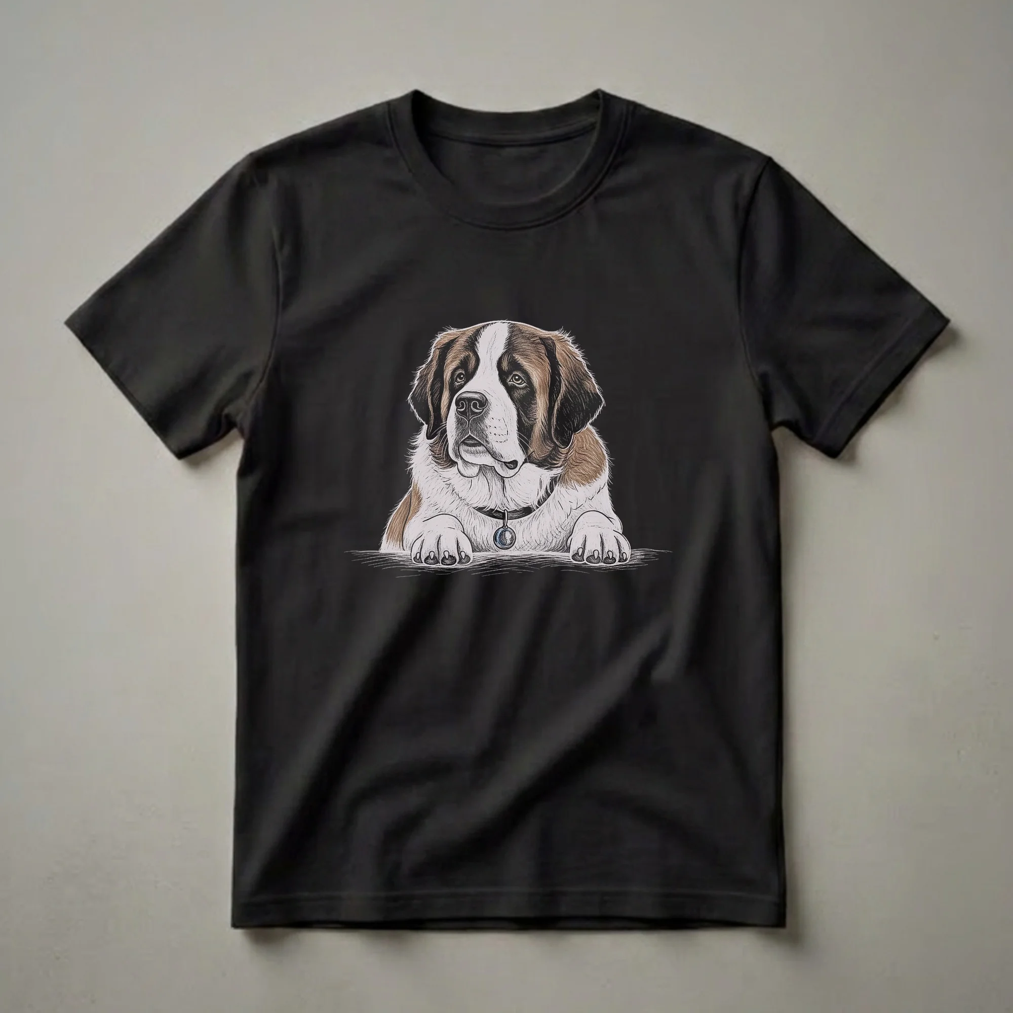 - Saint Bernard graphic tee featuring expressive hand-drawn art, celebrating a gentle giant.