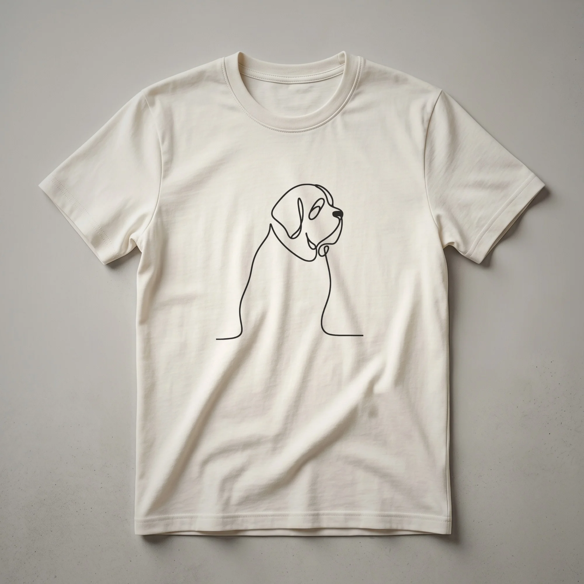 Showcase your love for the gentle giant with this minimalist Saint Bernard line art t-shirt. This t-shirt features a striking line art drawing of a Saint Bernard, capturing the dog's noble profile with a single, continuous line. The minimalist design highlights the breed's distinctive features, from its broad head to its floppy ears. Saint Bernards, originally bred in the Swiss Alps for rescue work, are known for their calm temperament and affectionate disposition. This graphic tee is a staple for any dog mom or dad who cherishes their gentle giant. It makes a thoughtful gift for birthdays or holidays for the Saint Bernard enthusiast in your life. Wear this shirt to your next dog park visit or casual outing to spark conversations with fellow dog lovers.