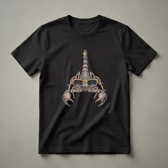 Scorpions, fascinating arachnids known for their distinctive pincers and segmented tails, are often found in desert and arid environments across the globe. This striking graphic tee captures the essence of these resilient creatures with a unique artistic twist. The detailed drawing showcases a scorpion sporting a pair of cool, yellow-rimmed sunglasses, giving it a laid-back yet formidable appearance. This t-shirt is a fantastic way for reptile and insect enthusiasts to express their appreciation for these often misunderstood animals. Whether you're a budding entomologist, a fan of desert wildlife, or simply appreciate unique art, this shirt makes a thoughtful gift. It's a conversation starter, great to wear to casual outings, nature walks, or while discussing your favorite creepy crawlies. The detailed artwork highlights the intricate segments of the scorpion's body and its powerful claws, making it a standout piece in any wardrobe. This shirt is a go-to tee for anyone who admires the resilience and unique beauty of scorpions.