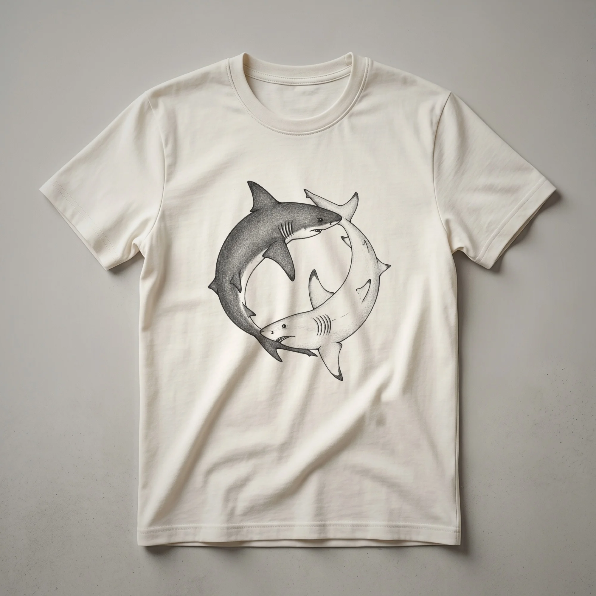 Ocean lovers and shark enthusiasts will appreciate this striking graphic tee featuring a unique Yin Yang design. The symbol, traditionally representing balance, is reimagined here with the powerful silhouettes of sharks, embodying the predator's vital role in maintaining marine ecosystem equilibrium. Sharks, such as the great white or tiger shark, are apex predators that help regulate populations of other marine species, ensuring the health of coral reefs and the broader ocean environment. This t-shirt is a conversation starter for anyone fascinated by these magnificent creatures and the deep blue sea. It's a thoughtful gift for divers, marine biologists, or anyone who feels a connection to the ocean's most iconic inhabitants. Wear this shirt to the beach, to a marine life documentary screening, or simply as a daily reminder of the ocean's power and beauty. This apparel is a staple for those who admire the balance of nature and its inhabitants.