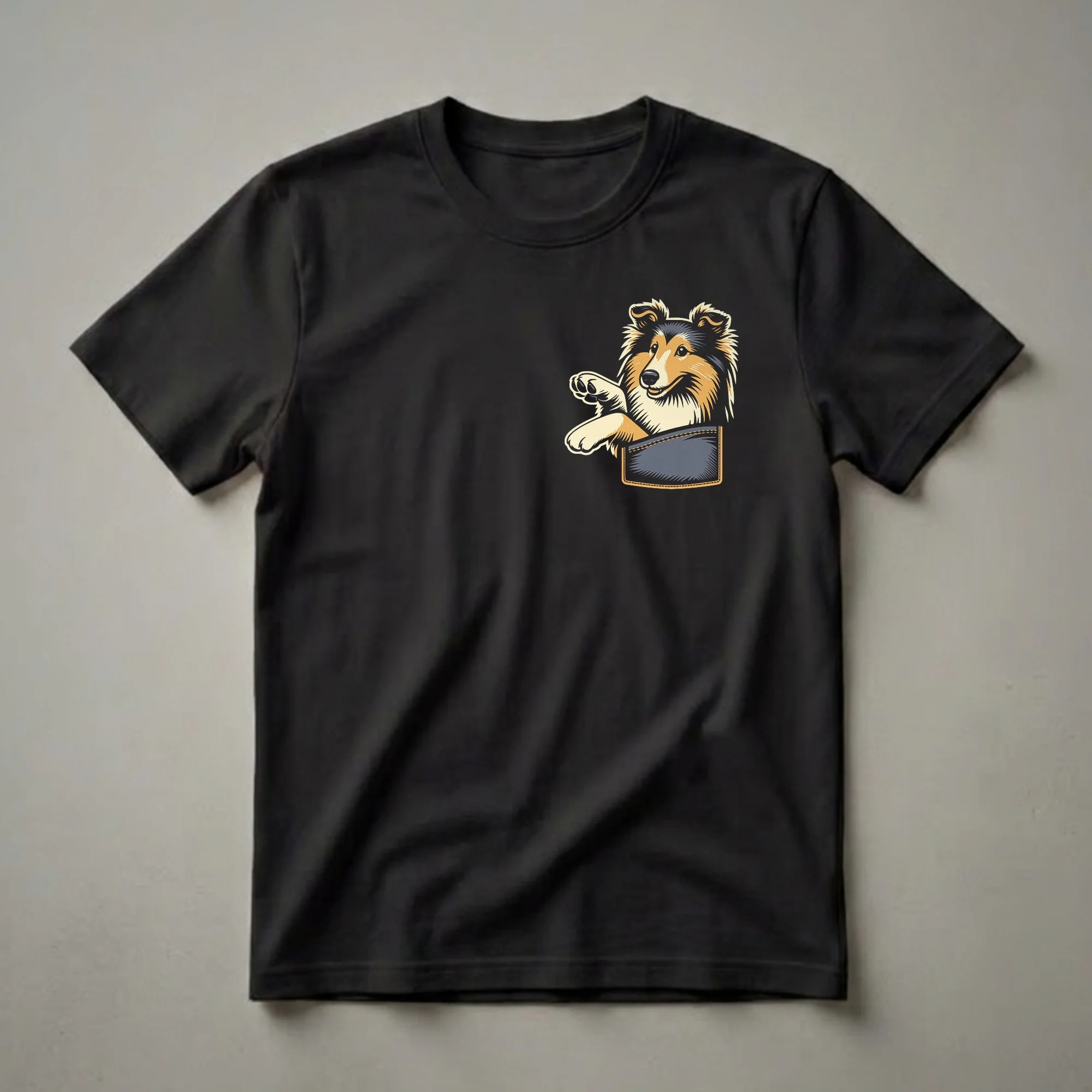 Hover to zoom · tap to expand Shetland Sheepdog Peeking Pocket Graphic T-Shirt for Sheltie Lovers
