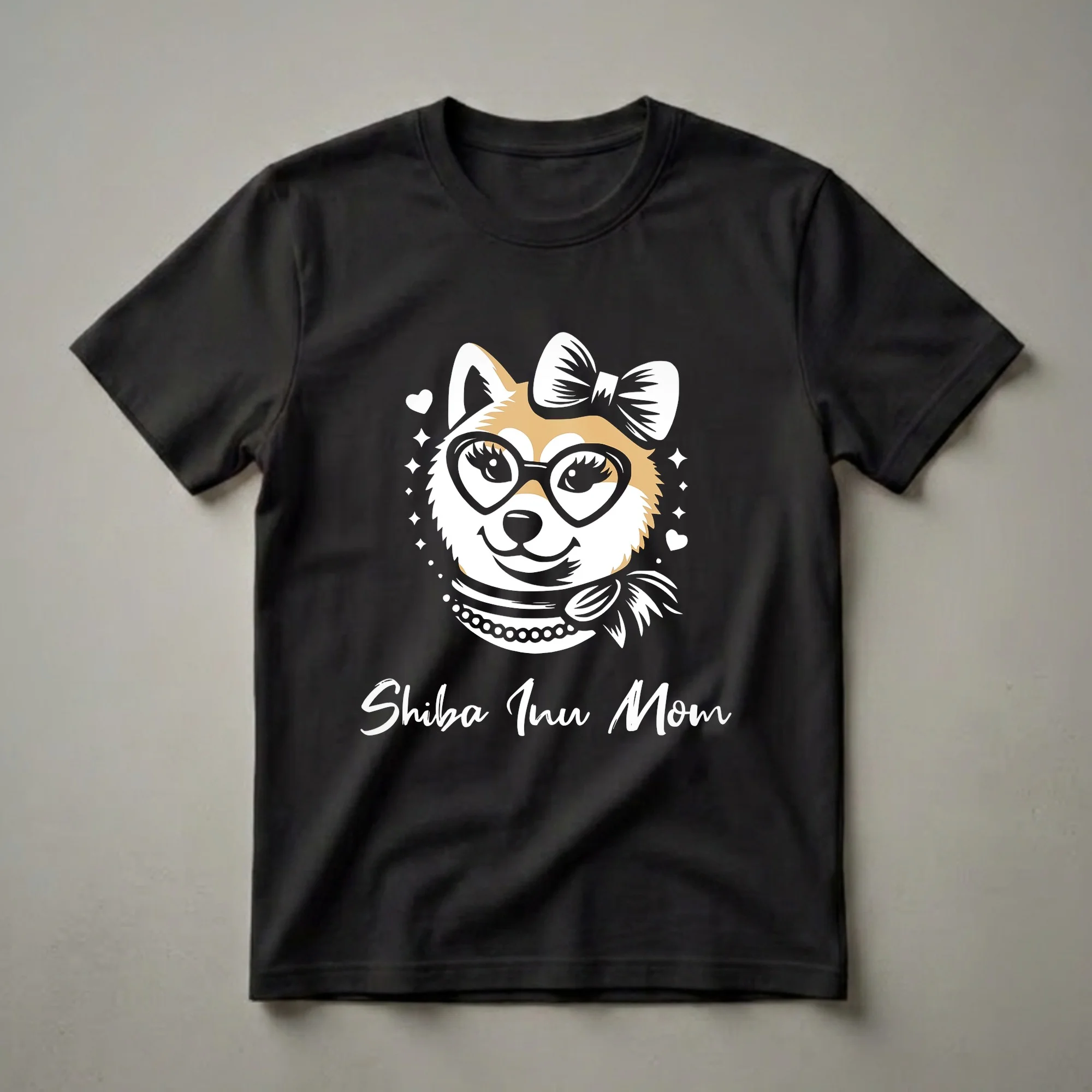 - Showcase your Shiba Inu Mom pride with this unique heart glasses and bow graphic tee.