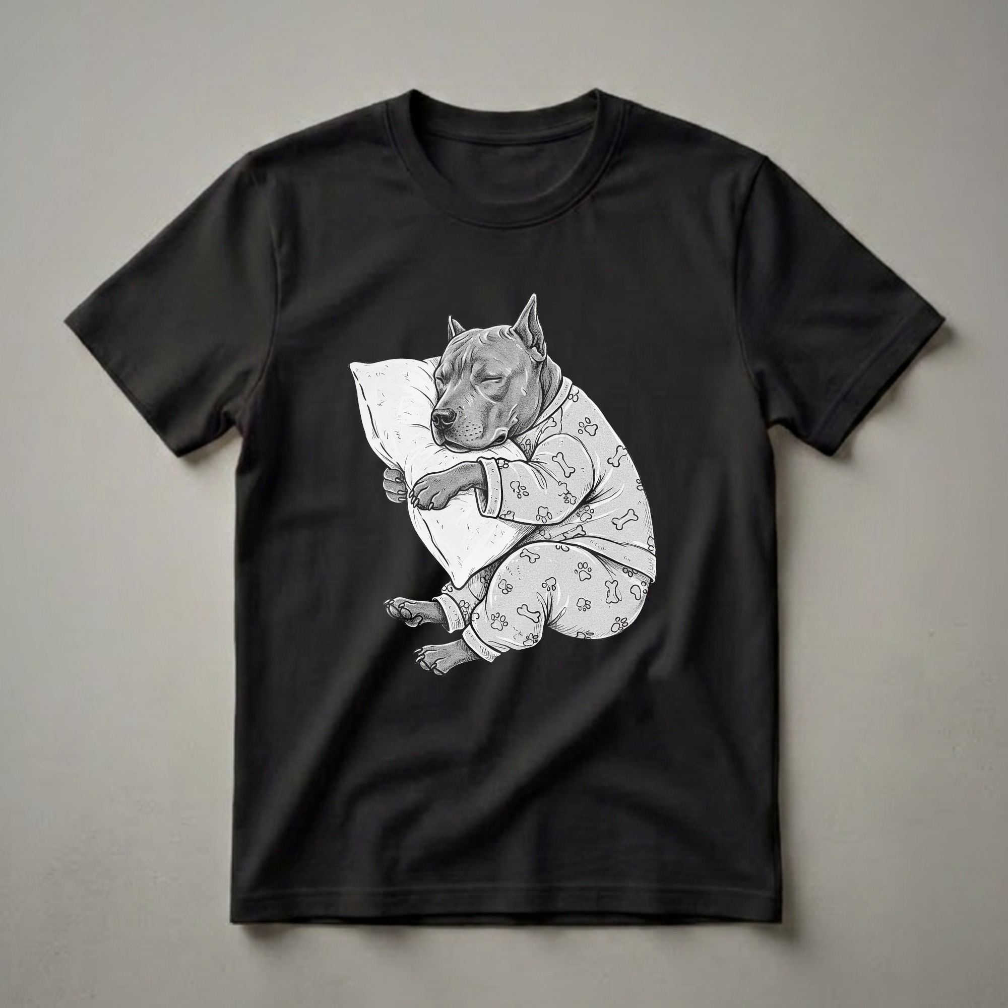 Dogo Argentino lovers who appreciate a good night's sleep will adore this graphic tee. The design showcases a Dogo Argentino, a breed known for its strength and loyalty, depicted in a charmingly relaxed pose. This striking artwork features the dog dressed in pajamas adorned with paw prints and bones, sound asleep while hugging a pillow. The sketch art style adds a unique, artistic touch to this comfortable shirt. Dogo Argentinos were originally bred in Argentina for big-game hunting, requiring a robust and athletic build, yet this depiction highlights their softer, more domestic side. This t-shirt is a thoughtful gift for any Dogo Argentino owner, especially those who find their powerful breed to be a gentle giant at home. It's a go-to tee for lounging around the house, enjoying a lazy weekend morning, or even as comfortable sleepwear. Imagine wearing this to a casual get-together or while relaxing with your own canine companion. This shirt celebrates the quiet moments of companionship and the endearing nature of our four-legged friends, making it a staple for any dog enthusiast's wardrobe.