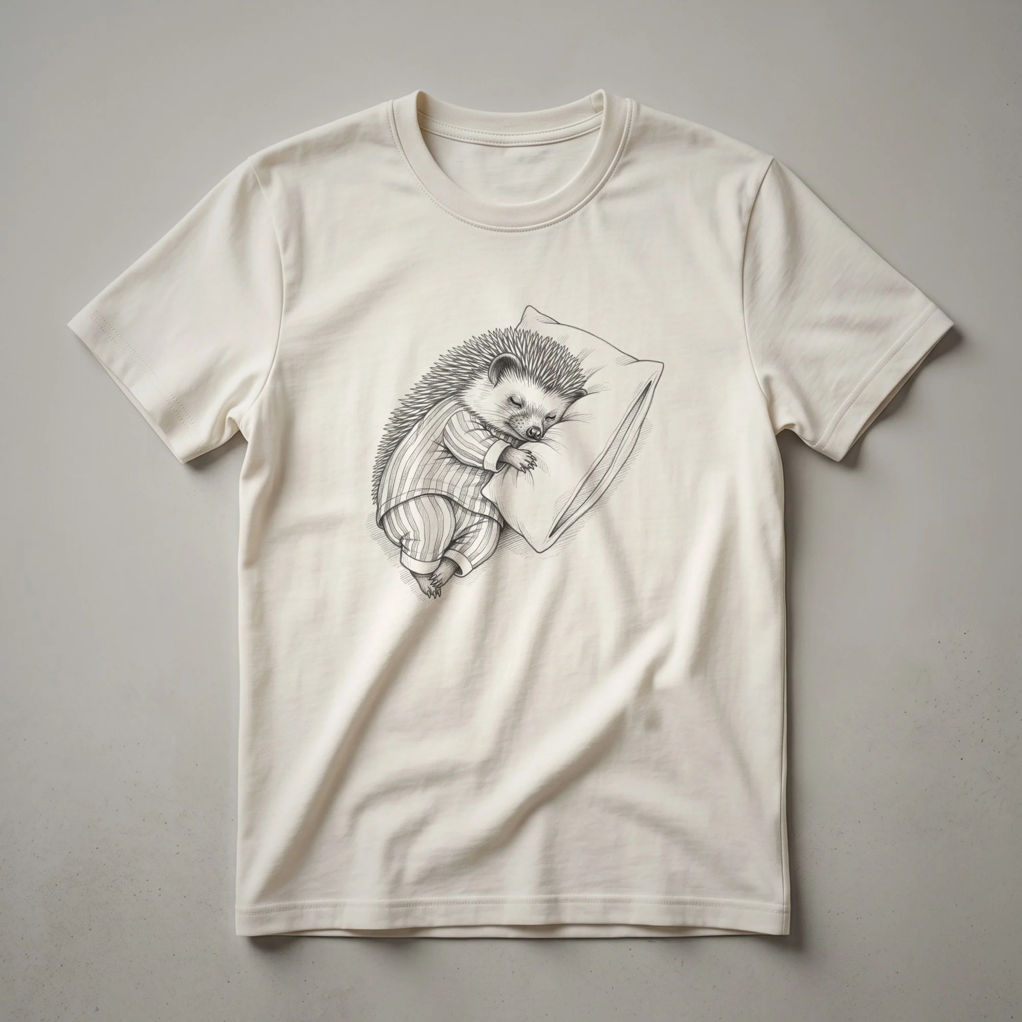 Hedgehog owners and admirers who appreciate a good nap will reach for this charming graphic tee. The design showcases a whimsical line drawing of a hedgehog, complete with a cozy pajama set, embodying the spirit of relaxation and comfort. Hedgehogs, known for their nocturnal habits and unique defense mechanisms, are fascinating creatures that inspire this sleepy-themed apparel. This shirt is a playful nod to the quiet moments of life, celebrating the joy of a good night's sleep or a lazy weekend morning. It's a staple in the collection for anyone who finds solace in the simple pleasures, like a warm bed and a peaceful slumber. This t-shirt works well for casual outings, lounging at home, or as a conversation starter among fellow animal enthusiasts. Looking for a gift for the hedgehog lover in your life? This eye-catching tee makes a thoughtful gift for birthdays, holidays, or just because. It's a wearable piece of art that brings a smile to your face and comfort to your day, embodying the gentle nature of these spiky mammals. Wear it to game night or while enjoying a quiet brunch.
