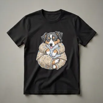 Miniature American Shepherds, known for their intelligence and energetic nature, are captured here in a moment of pure relaxation. This eye-catching graphic tee showcases a tri-color Miniature American Shepherd dog sound asleep, nestled on a light blue pillow and dressed in cozy, tan pajamas adorned with playful paw prints, sheep, and bones. The dog's eyes are closed, its tongue is peeking out, and its paws are tucked in, embodying the ultimate comfort. This shirt is a staple for any dog mom or dad who cherishes their canine companion, especially those who appreciate the breed's distinctive tri-color coat. It makes a thoughtful gift for anyone who loves dogs or enjoys a good night's sleep. Imagine wearing this tee while lounging at home or enjoying a casual weekend brunch, sharing a smile with fellow dog enthusiasts. This graphic t-shirt is a delightful addition to any casual wardrobe, celebrating the joy of our four-legged friends.