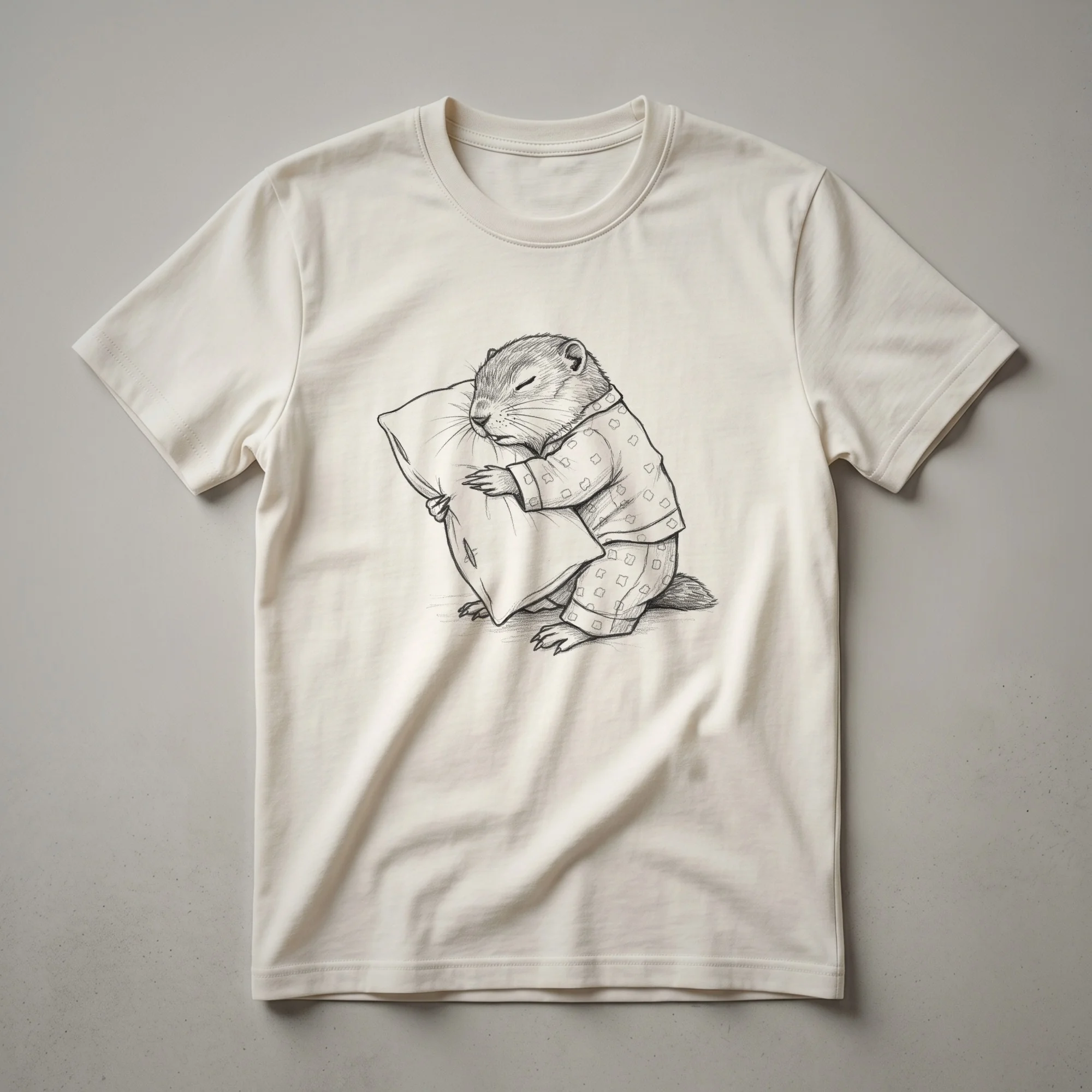 Gophers, known for their burrowing habits and often seen as industrious creatures, are depicted here in a completely relaxed state. This graphic tee showcases a charming, hand-drawn illustration of a gopher dressed in cozy pajamas, sound asleep. The art style is simple and endearing, capturing the essence of a creature that has finally decided to rest. This t-shirt is a humorous take on the animal kingdom, highlighting that even the busiest creatures need their downtime. It's a playful design that resonates with anyone who understands the universal appeal of a good nap. This shirt works well for those who love animals and appreciate a touch of whimsy in their wardrobe. It makes a thoughtful gift for friends or family members who are gopher enthusiasts or simply enjoy funny animal-themed apparel. Imagine wearing this tee to a casual game night or a relaxed weekend brunch, sparking smiles and conversations about the joys of sleep. The gopher's slumbering pose is relatable to anyone who has ever craved a moment of peace and quiet. This unique gopher shirt is a staple for those who enjoy a good laugh and a comfortable tee.