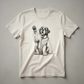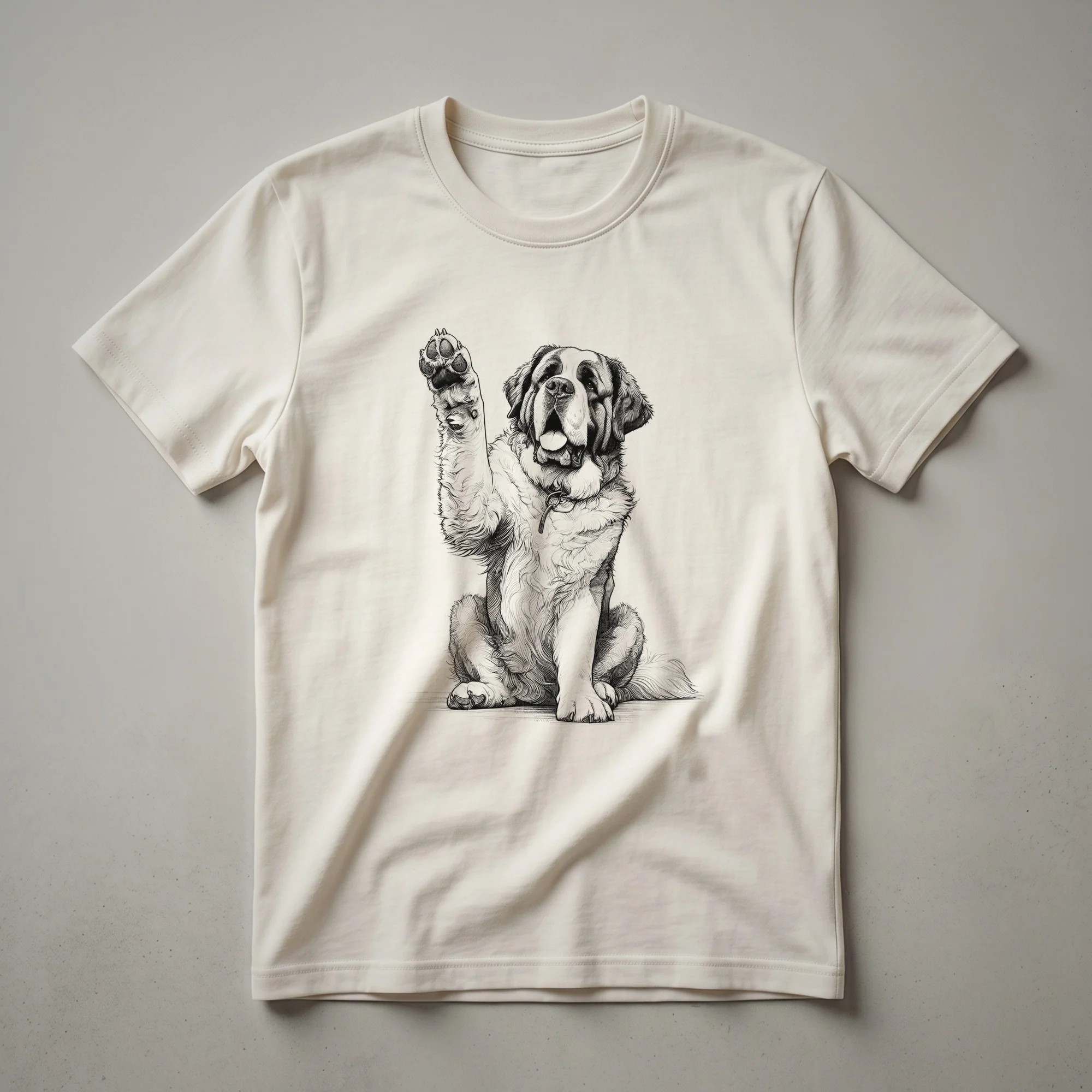 - A striking St. Bernard raising its paw graphic on a t-shirt for dog moms.