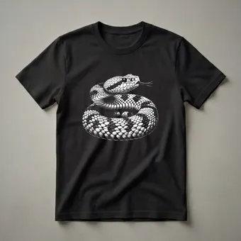 Reptile enthusiasts and admirers of striking wildlife art will appreciate this detailed graphic tee featuring a coiled rattlesnake. The linocut-style illustration captures the intricate scales and alert posture of the venomous serpent, with its forked tongue flicking in anticipation. Rattlesnakes are iconic inhabitants of the Americas, known for their distinctive rattle, a warning mechanism used to deter predators. These fascinating creatures play a vital role in their ecosystems, often controlling rodent populations. This shirt is a bold statement piece for anyone drawn to the wild and the beauty of snakes. It makes a thoughtful gift for the herpetologist, nature photographer, or anyone who respects the power and mystique of these cold-blooded reptiles. Wear this unique t-shirt to outdoor adventures, casual gatherings, or as a conversation starter among fellow animal lovers. This graphic shirt is a staple for those who appreciate detailed wildlife art and the untamed spirit of the natural world.