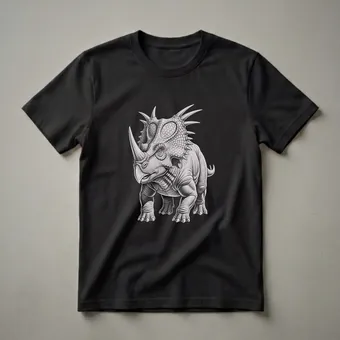 Paleontology enthusiasts will appreciate the intricate detail in this Styracosaurus drawing, a striking representation of the Late Cretaceous dinosaur. This graphic tee features a meticulously rendered Styracosaurus, complete with its distinctive frill and prominent nasal horn, depicted in a classic black and white artistic style. The Styracosaurus, known for its impressive array of cranial spikes and a single large horn, roamed North America approximately 75 to 73 million years ago. This shirt is a thoughtful gift for anyone fascinated by ancient reptiles, fossil hunters, or students of prehistoric life. It's a go-to tee for casual outings, museum visits, or simply expressing a passion for the Mesozoic era. Imagine wearing this eye-catching apparel to a natural history museum or a dinosaur-themed event, sparking conversations about these magnificent ancient beasts. This unique t-shirt offers a vintage wildlife art aesthetic, making it a standout piece for any wardrobe. It's a fantastic way for dinosaur lovers to wear their fascination with pride, celebrating the incredible diversity of life that once existed on Earth. The detailed artwork captures the formidable nature of this herbivorous dinosaur, making it a compelling visual statement for those who admire prehistoric giants.