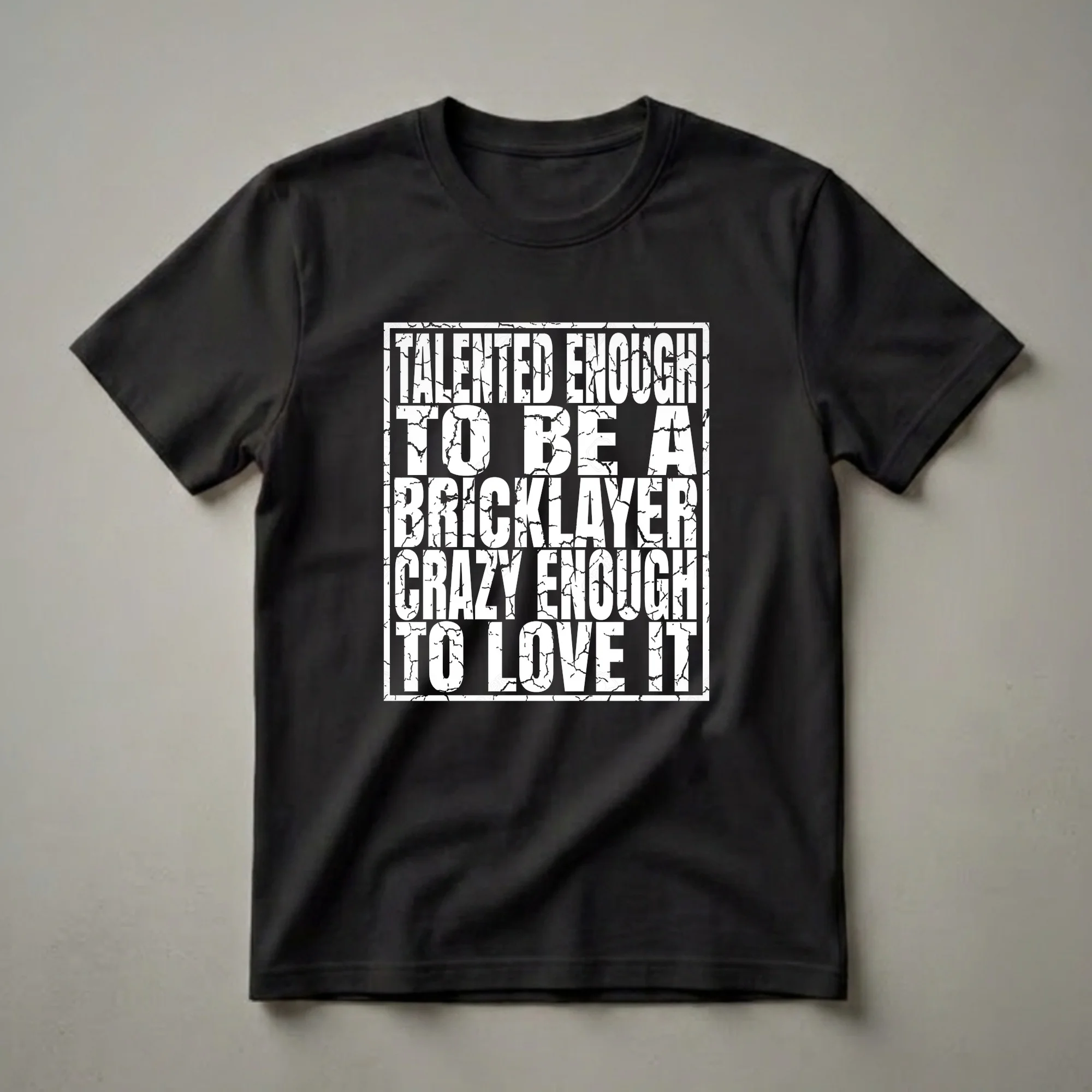 - Features bold, distressed white text that reads 'Talented Enough To Be A Bricklayer Crazy Enough To Love It'.
