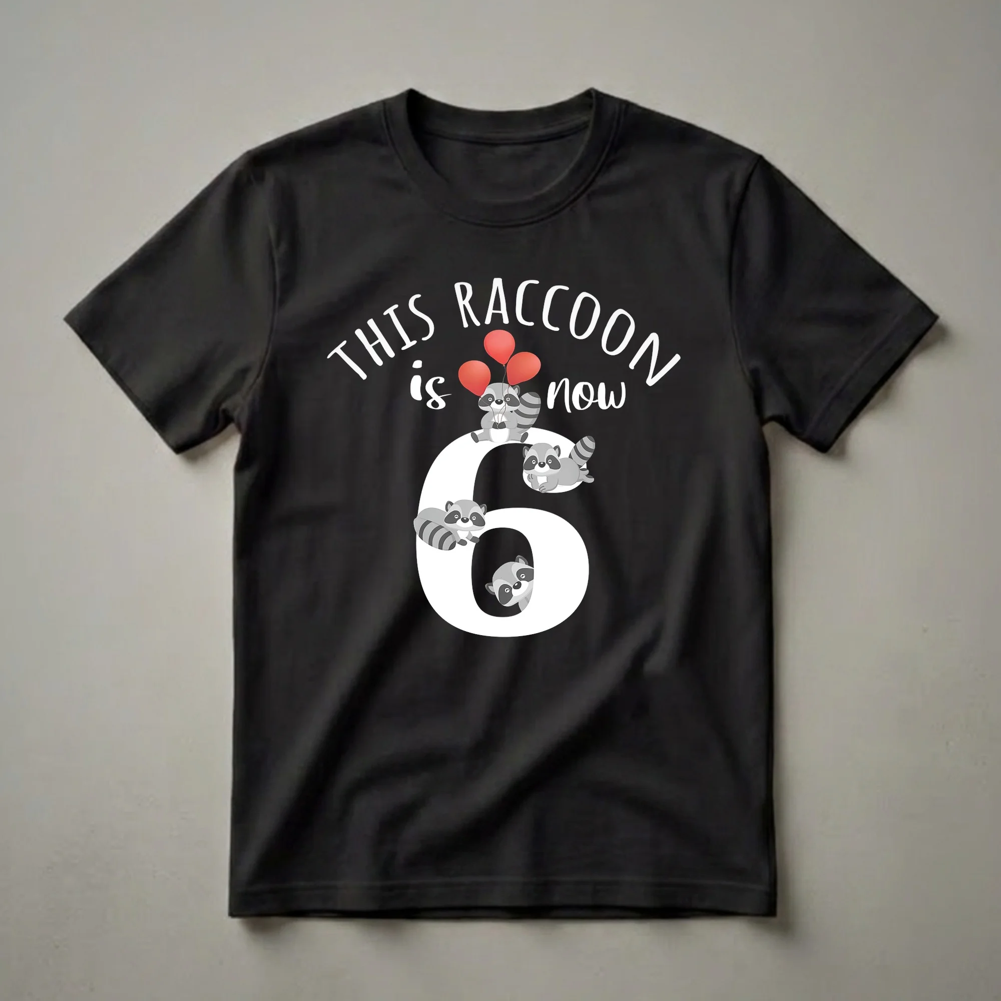 - This fun raccoon t-shirt is for any child celebrating their 6th birthday.