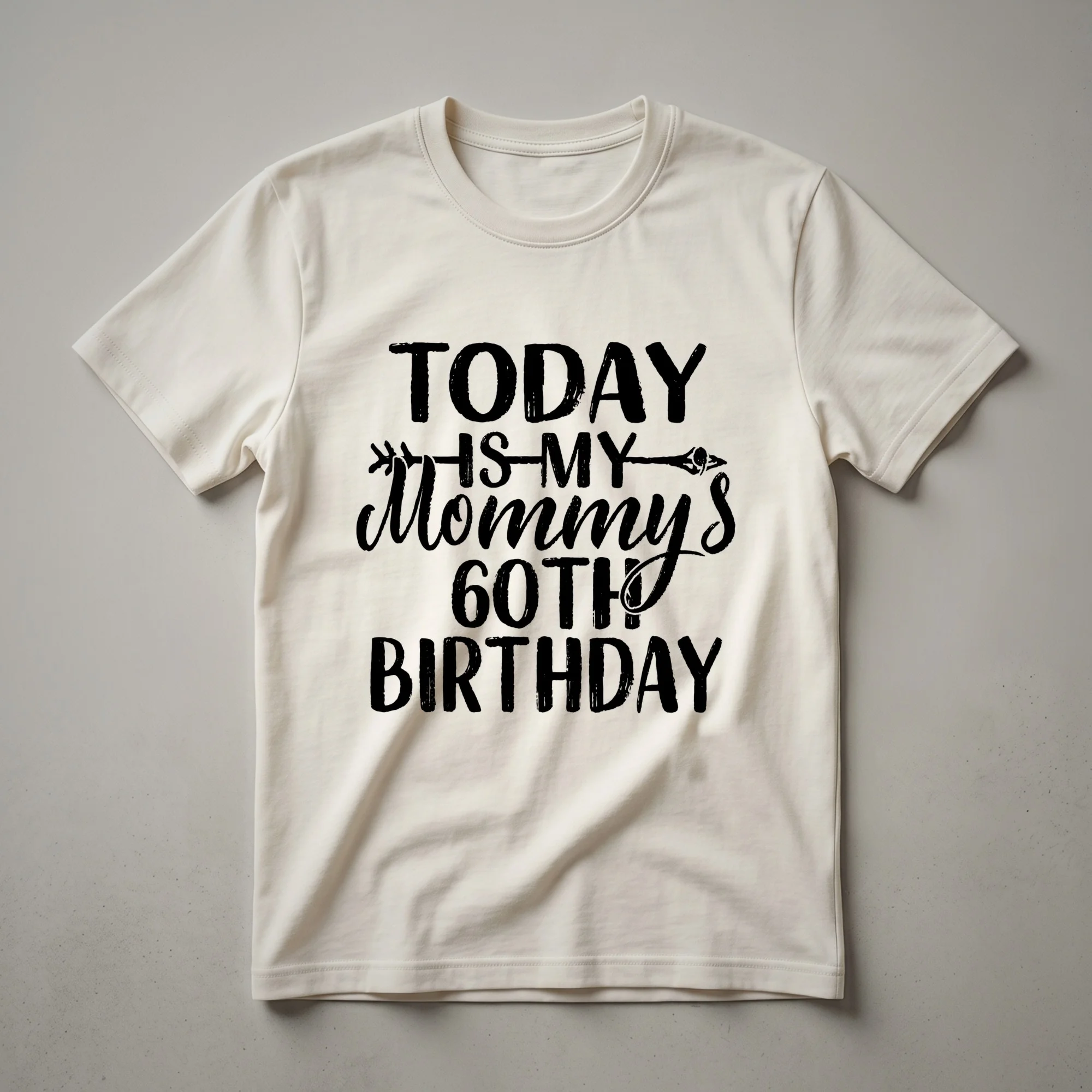 Sixty years is a significant milestone, and this 'Today Is My Mommy's 60th Birthday' t-shirt is a fantastic way to celebrate the mom in your life. The design features bold, playful lettering that clearly announces the special occasion, making it an eye-catching statement piece for any birthday celebration. This shirt is a thoughtful gift for any mother reaching this incredible age, whether she's planning a large party or a more intimate gathering. It’s a fun way for her to wear her birthday pride and share the joy with friends and family. Imagine her delight when she unwraps this special tee, knowing it was chosen just for her milestone birthday. This graphic shirt works well for birthday brunches, family dinners, or as a casual outfit for birthday week festivities. It’s a staple in any birthday wardrobe, offering a touch of personality and festivity. This shirt is a wonderful way to honor a mom who has reached the fabulous age of sixty, making her feel celebrated and cherished on her special day. It’s a gift that brings smiles and commemorates a memorable birthday.