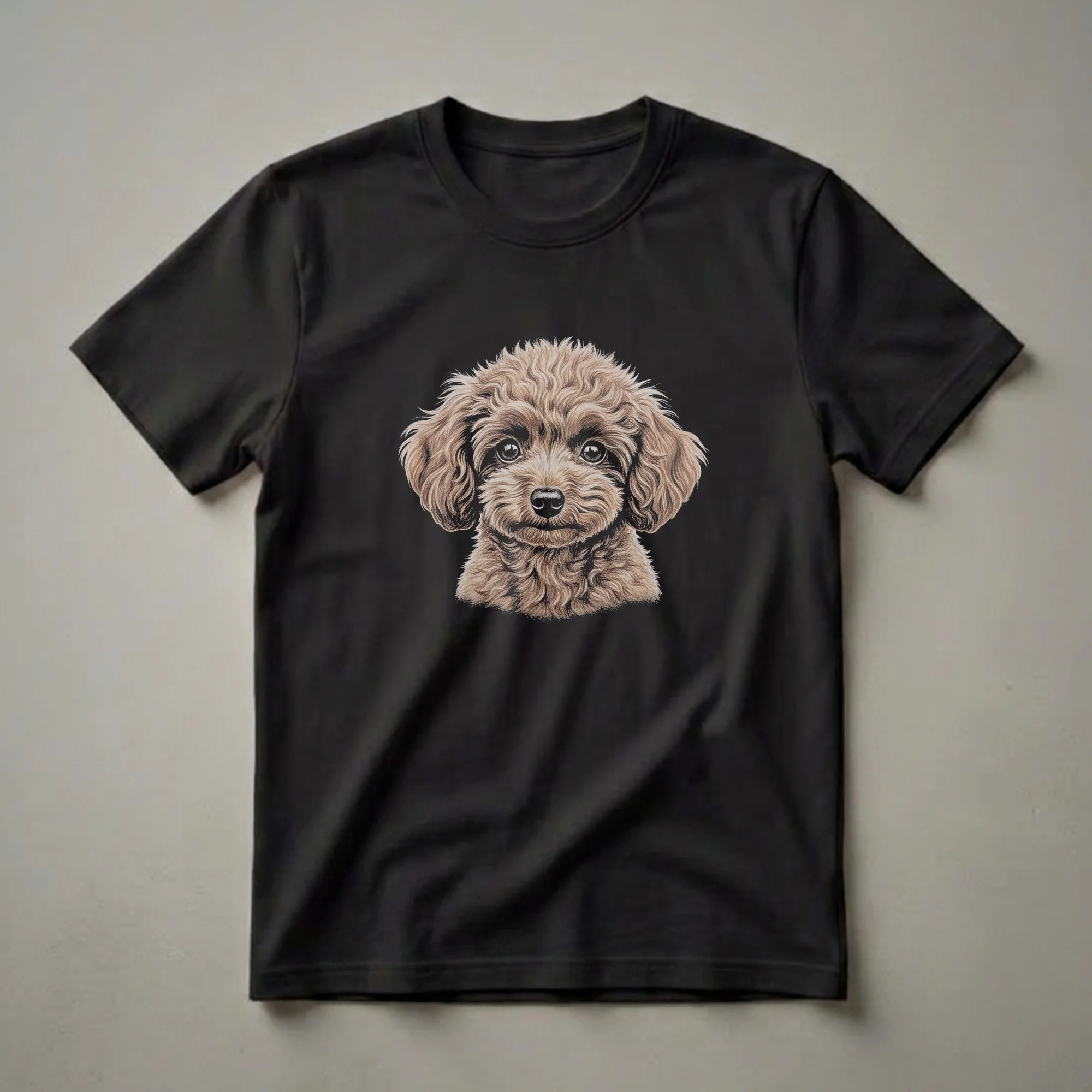 Toy Poodle owners know the breed's intelligence and playful spirit, often seen in their distinctive curly coats. This striking graphic tee features a beautifully rendered drawing of a Toy Poodle's face, capturing its alert eyes and fluffy texture with remarkable detail. The art style evokes a vintage wildlife illustration, bringing a touch of classic charm to your wardrobe. Poodles, originally bred in Germany as water retrievers, are known for their hypoallergenic coats and are one of the most popular dog breeds worldwide. This shirt is a staple for any dog mom or dog dad who cherishes their canine companion. It makes a thoughtful gift for a friend or family member who adores their Toy Poodle. Wear this eye-catching t-shirt to your next dog park visit or casual outing to spark conversations with fellow dog lovers.