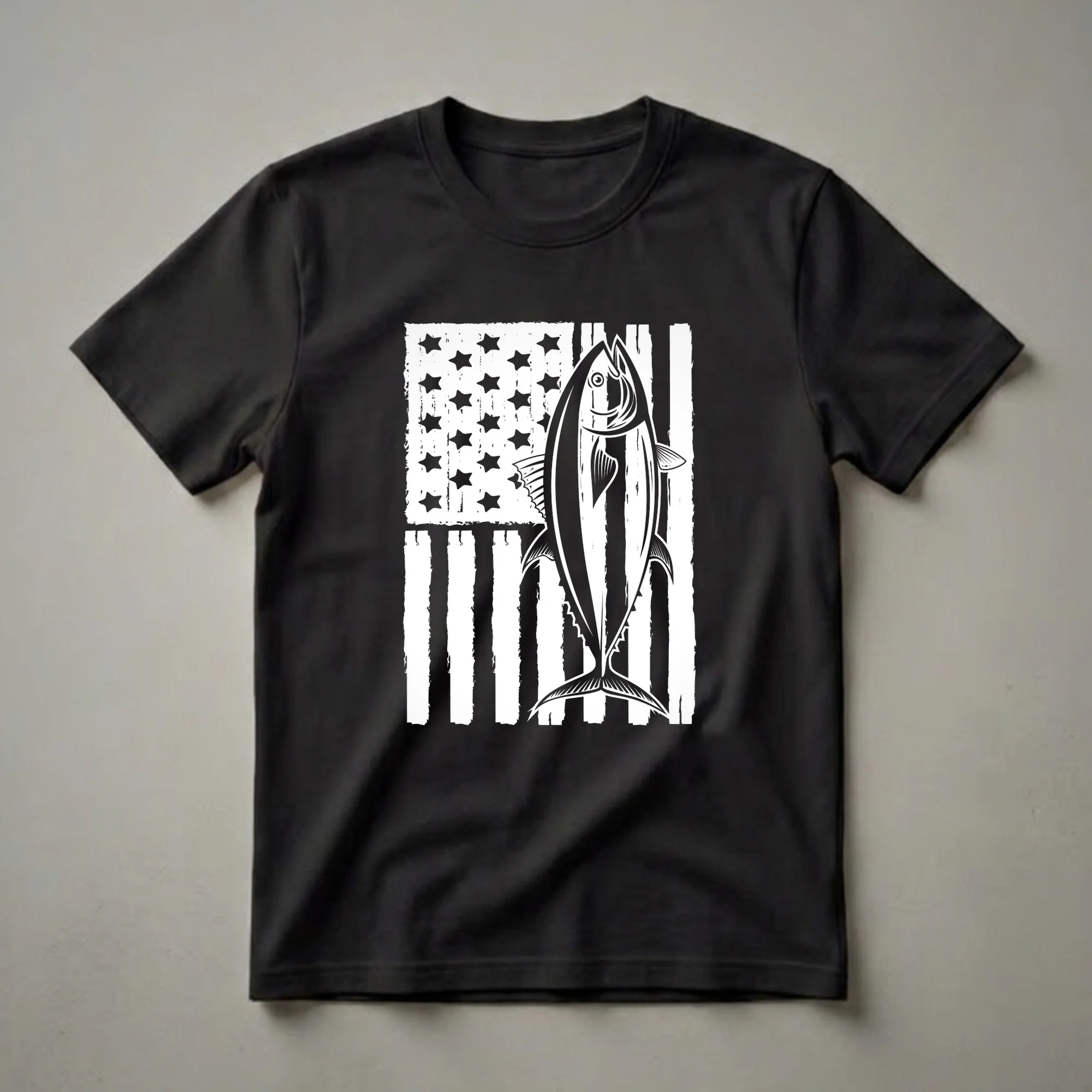 Hover to zoom · tap to expand Tuna Fish American Flag Graphic T-Shirt for Fishing Enthusiasts
