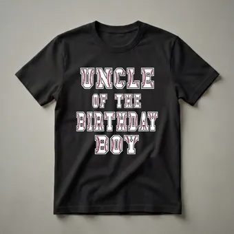 The uncle who loves baseball and cheering on his favorite young athlete will reach for this graphic tee. The design features bold, collegiate-style lettering that spells out "UNCLE OF THE BIRTHDAY BOY." Each letter is filled with the iconic red stitching and white panels of a baseball, giving it a sporty and authentic look. This shirt is a fantastic way for an uncle to show his pride and support for the birthday boy, especially if he's a budding baseball star. Baseball, often called America's Pastime, has a rich history dating back to the 19th century and continues to be a beloved sport for players and fans alike. This tee works well for any birthday celebration, from a casual backyard party to a more formal family gathering. It makes a thoughtful gift for any uncle who enjoys watching his nephew play ball or wants to commemorate a special birthday milestone. Imagine him wearing this shirt to the baseball field, a birthday party, or just out and about, proudly displaying his role as the "Uncle of the Birthday Baller." This t-shirt is a staple for any baseball-loving uncle's wardrobe.