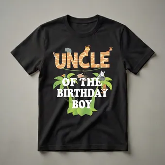 - Uncle of the Birthday Boy t-shirt for animal-themed parties.