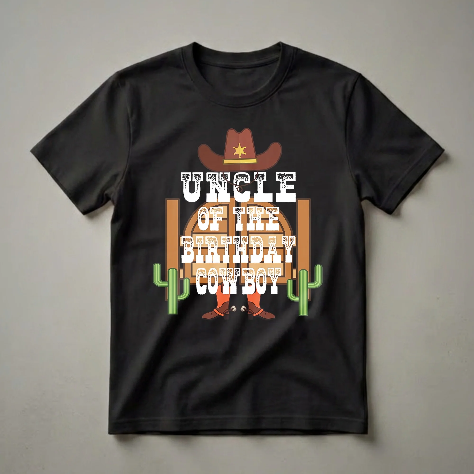 - Uncle of the Birthday Cowboy t-shirt for rodeo-themed parties.