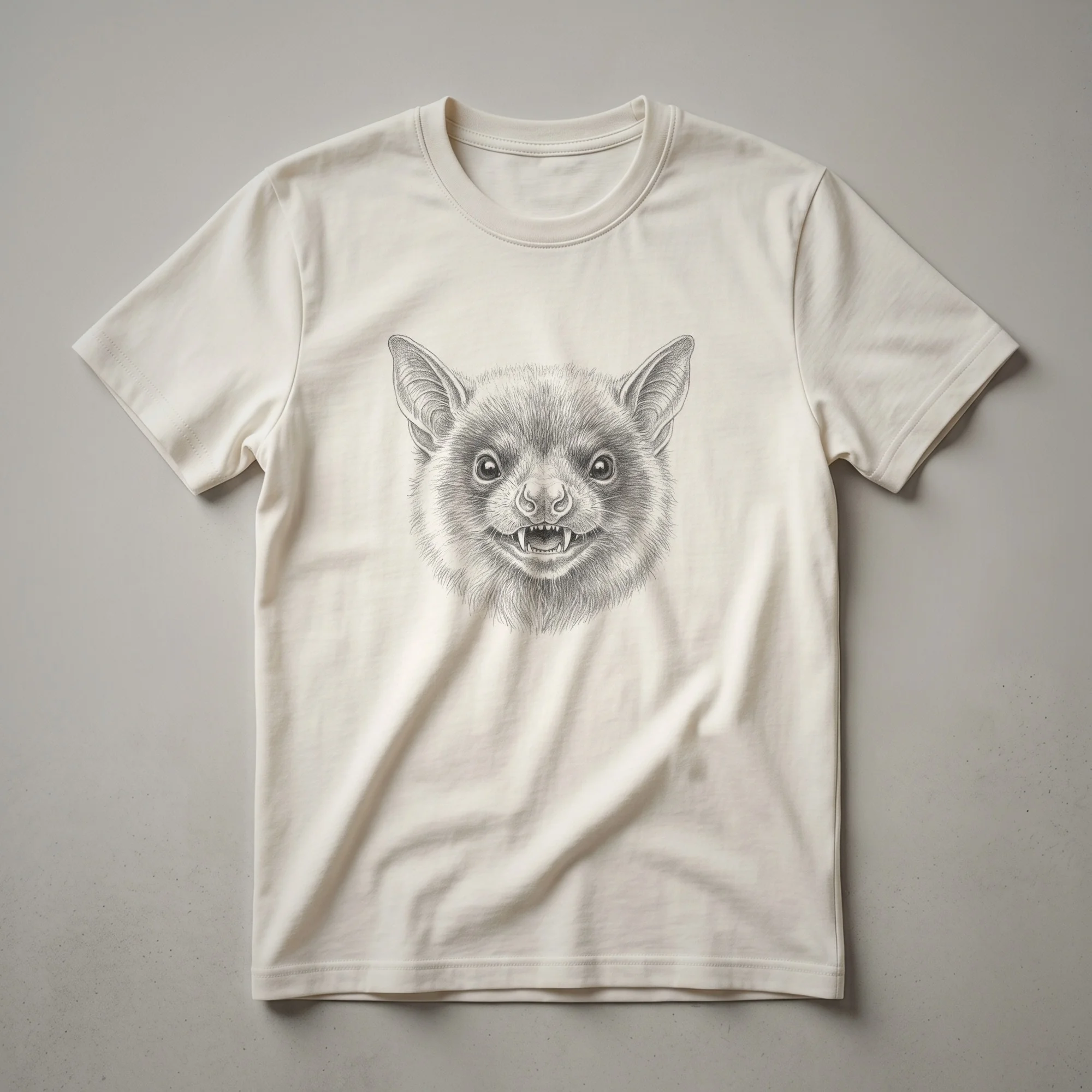 Wildlife enthusiasts who appreciate the intricate details of nature will reach for this unique vampire bat t-shirt. The design features a detailed line-art sketch of a vampire bat's face, highlighting its large ears, piercing eyes, and distinctive fangs. This striking graphic captures the essence of these fascinating nocturnal mammals. Vampire bats, native to Central and South America, are the only bats that feed on blood, primarily from livestock. Despite their reputation, they play a role in their ecosystem and are a subject of scientific study. This tee works well for anyone drawn to the mysterious and often misunderstood creatures of the night. It makes a thoughtful gift for the biologist, zoologist, or nature lover in your life who admires these unique mammals. Wear this shirt to your next nature walk, a casual outing, or while discussing your favorite wildlife documentaries. It's a conversation starter for those who understand the beauty in the unconventional. This graphic tee is a staple for anyone with a passion for entomology and mammalogy.