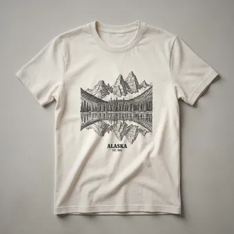 Alaskan adventurers and wilderness enthusiasts will appreciate this striking graphic tee that captures the rugged beauty of the Last Frontier. The design showcases a detailed line art drawing of majestic, snow-capped mountains reflected in a calm, still lake. A dense forest of pine trees lines the shore, creating a sense of depth and immersion in nature. Below the scenic vista, the word "ALASKA" is prominently displayed in a vintage-style font, accompanied by "EST. 1959," marking the year Alaska became the 49th state. This shirt is a thoughtful gift for anyone who cherishes the vast landscapes and untamed spirit of Alaska, whether they are planning a trip or reminiscing about past adventures. Wear this t-shirt on your next hike, camping trip, or simply as a reminder of the wild beauty that Alaska offers. It's a staple for any wardrobe celebrating the great outdoors and the unique identity of this northern state. The detailed drawing style evokes a sense of nostalgia and appreciation for the natural world, making it a go-to tee for those who feel a connection to Alaska's grandeur.