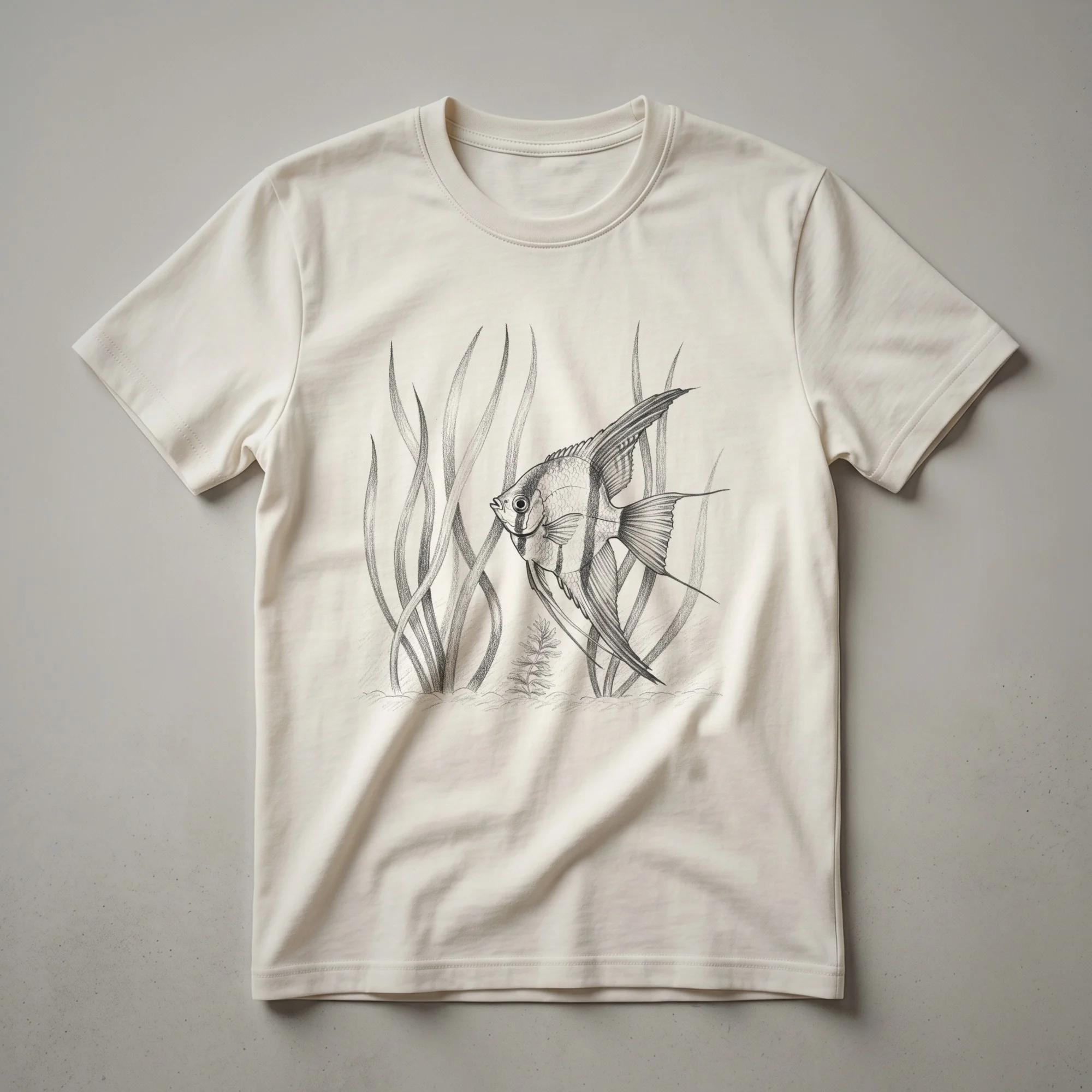 Hover to zoom · tap to expand Vintage Angelfish Hand Drawn Art T-Shirt for Marine Life Enthusiasts