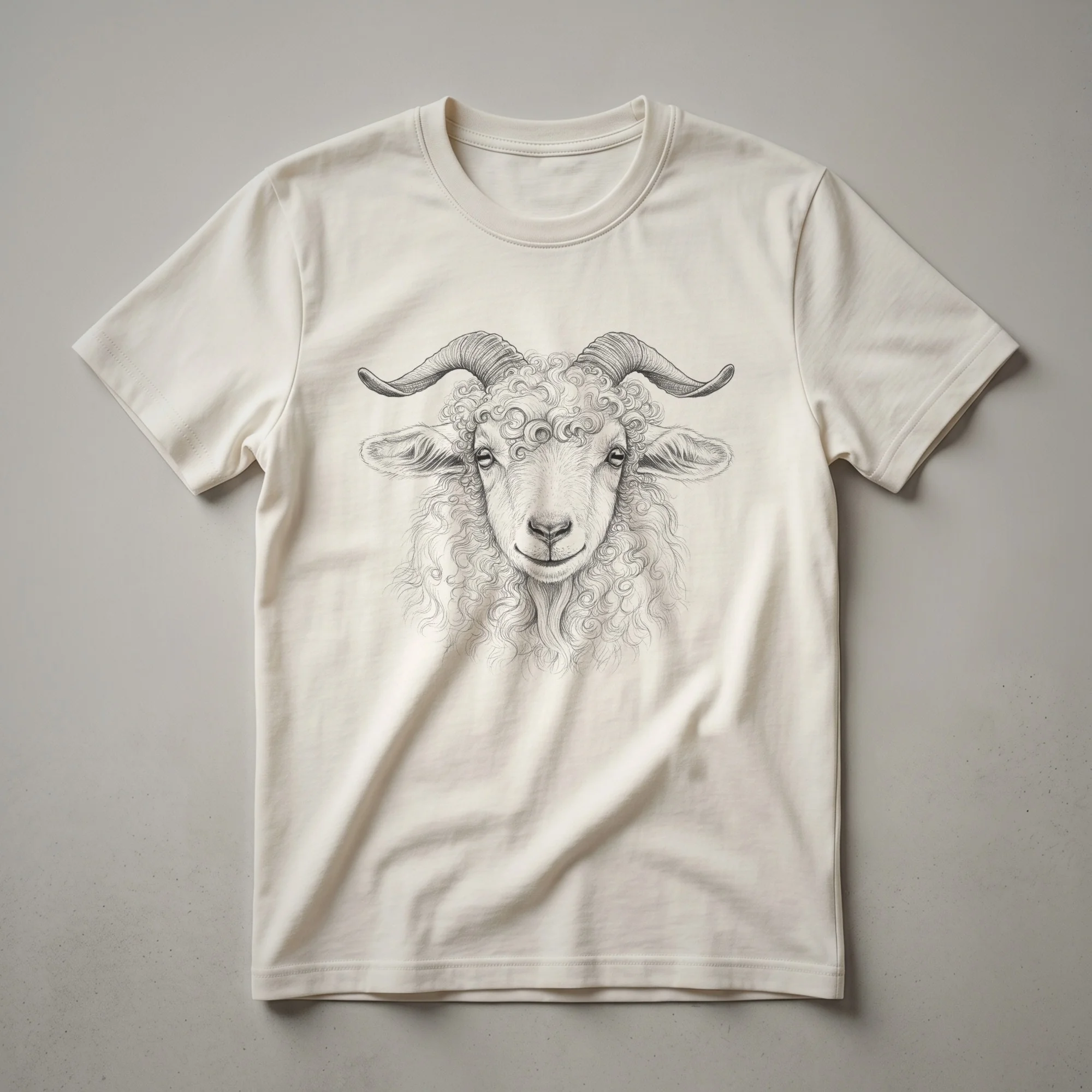 - Vintage Angora goat sketch tee celebrating unique wildlife artistry.