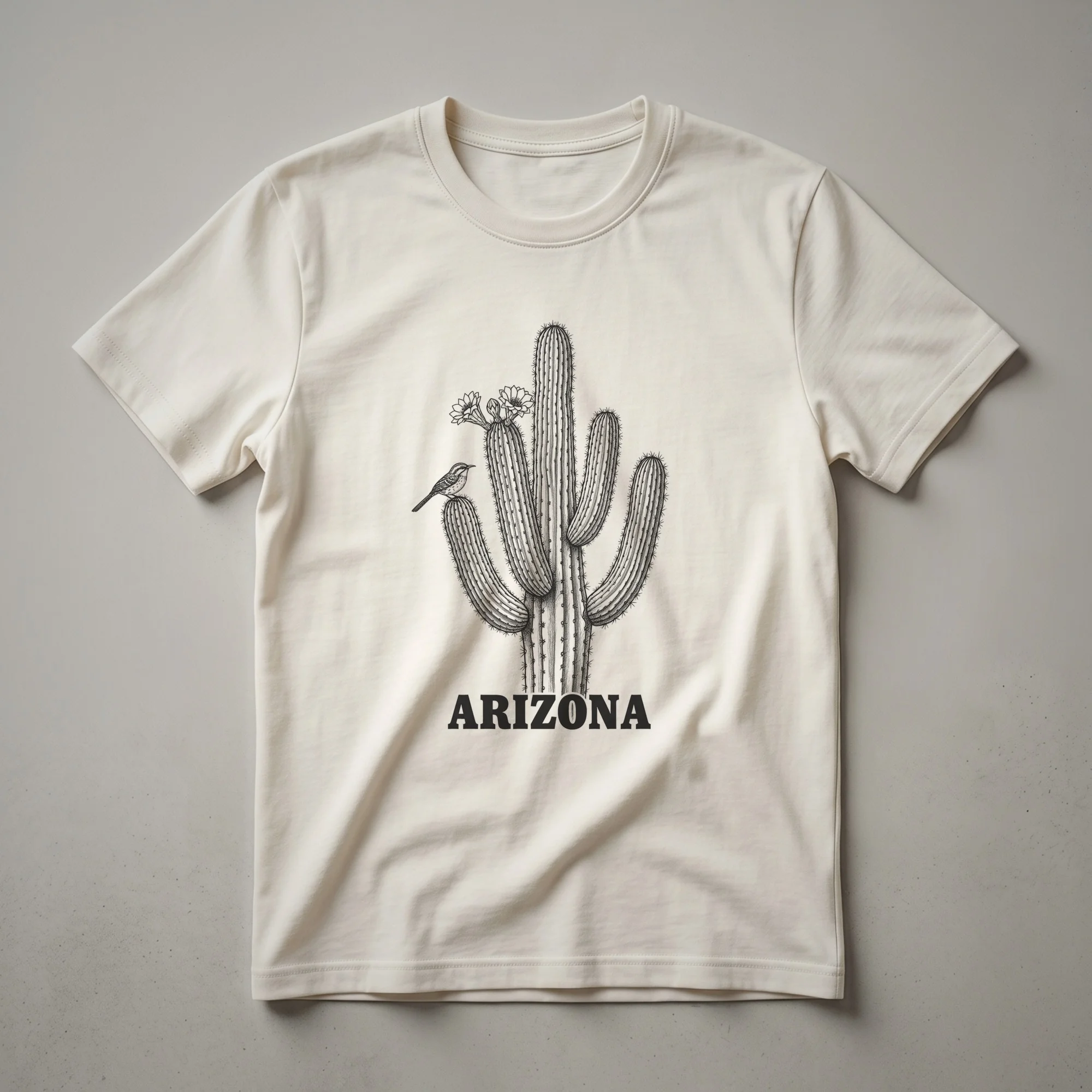 - Arizona Saguaro cactus and bird graphic tee for desert lovers.