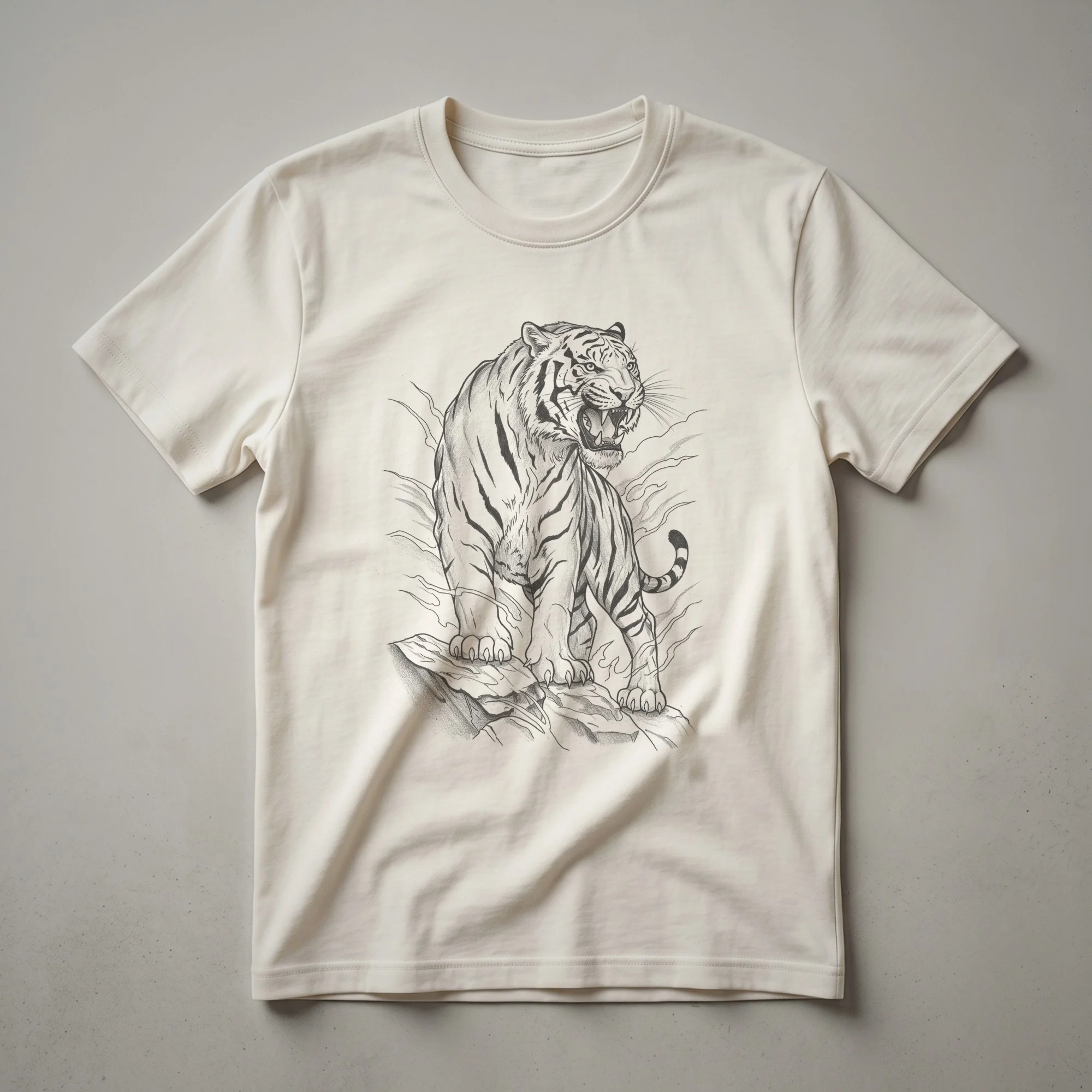 - A striking hand-drawn Bengal tiger graphic tee for wildlife enthusiasts.