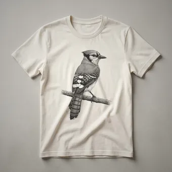 Bird watchers and nature enthusiasts will appreciate this vintage-style graphic tee featuring a detailed line drawing of a blue jay. The blue jay (Cyanocitta cristata) is known for its intelligence and vibrant blue plumage, often found in eastern and central North America. This shirt captures the bird's striking appearance in an artistic, retro aesthetic. It's a staple in the collection for anyone who admires these intelligent corvids. This t-shirt makes a thoughtful gift for the ornithologist in your life or for someone who enjoys wildlife art. Wear this shirt to your next bird-watching excursion or casual outing to express your passion for feathered friends. The design is printed on a comfortable tee, making it a go-to for everyday wear. This apparel is a conversation starter.