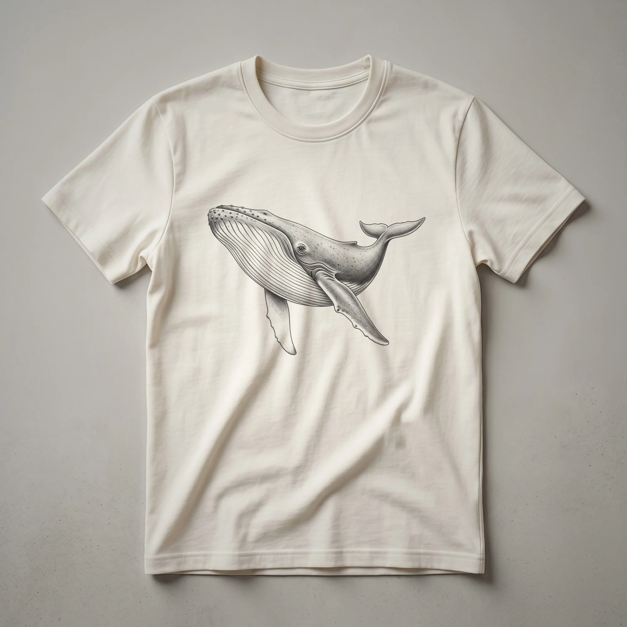 Marine life enthusiasts and ocean lovers will appreciate this striking t-shirt featuring a vintage-style line drawing of a majestic blue whale. The artwork captures the immense scale and graceful form of the largest animal on Earth, rendered in a classic, artistic style that evokes a sense of natural history and wonder. Blue whales, known for their baleen feeding and migratory patterns, inhabit all the world's oceans, making them a symbol of the vastness and mystery of the deep sea. This graphic tee is a thoughtful gift for anyone fascinated by cetaceans, marine biology, or the beauty of the underwater world. It’s a staple in the collection for those who want to wear their passion for ocean conservation and wildlife. This shirt works well for casual outings, trips to the aquarium, or simply relaxing at home while dreaming of the ocean. The detailed illustration makes this tee a conversation starter for fellow admirers of marine fauna. It's a unique way to express an appreciation for these gentle giants of the sea.